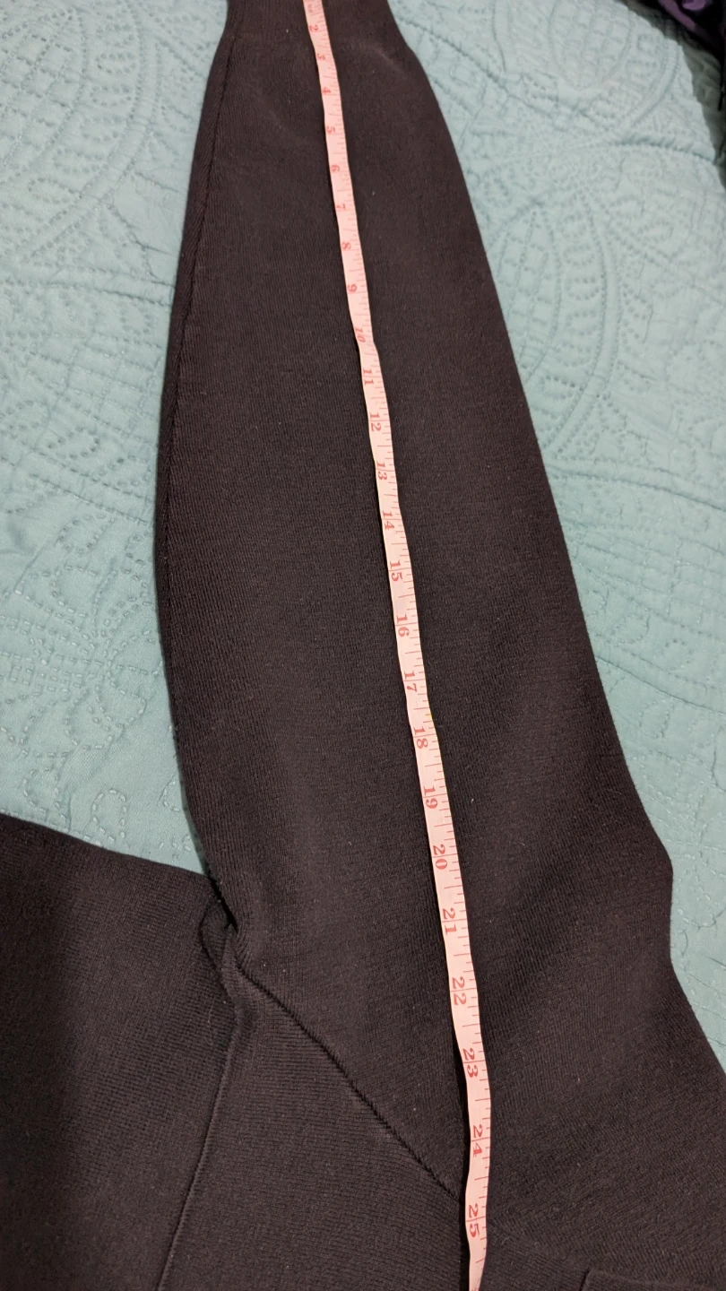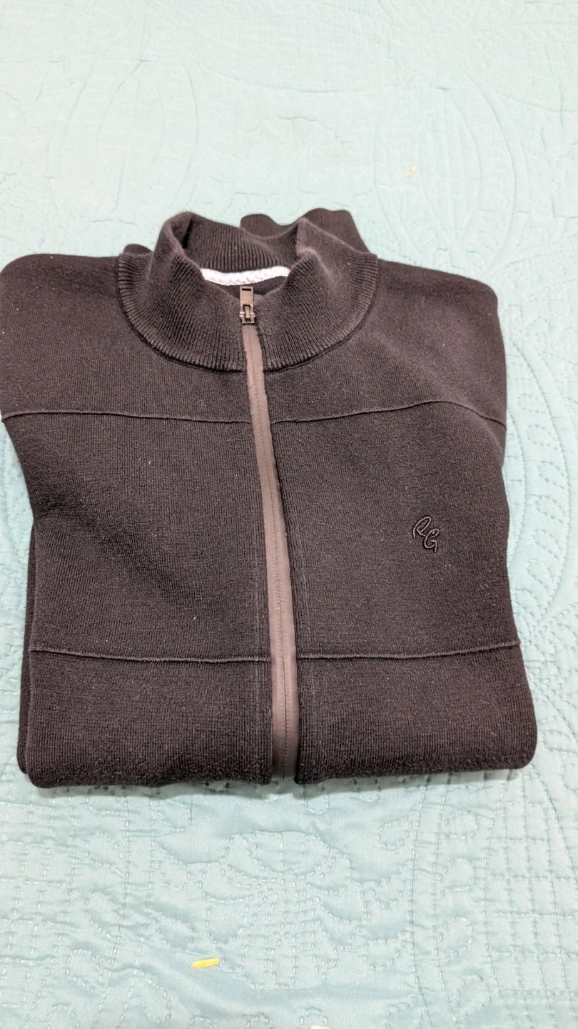 Selling a Roots zip-up cardigan in black. It's in good condition and perfect for layering! The length is approximately 27 inches, and the sleeve length is about 25 inches