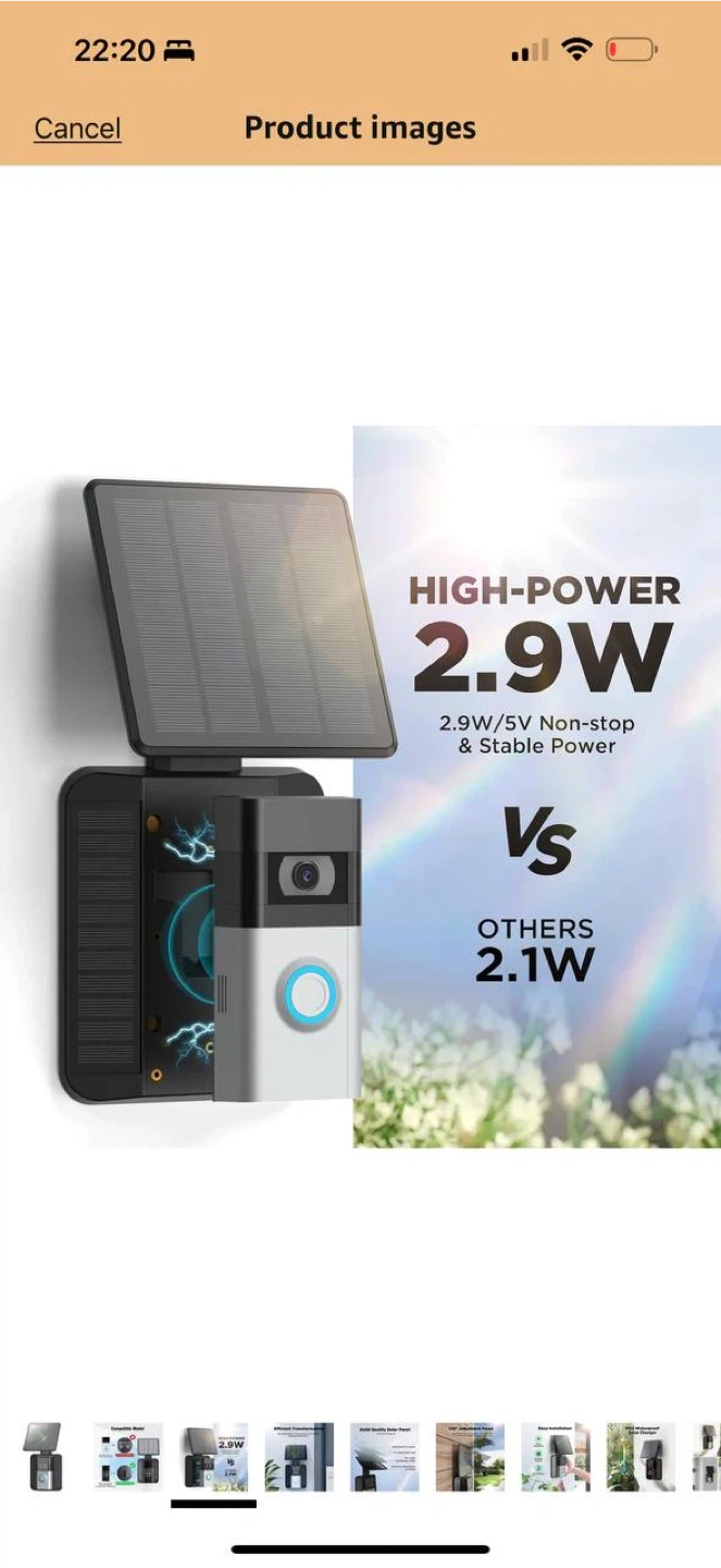 QIBOX Solar Charger Panel for Ring Video Doorbell – Open Box