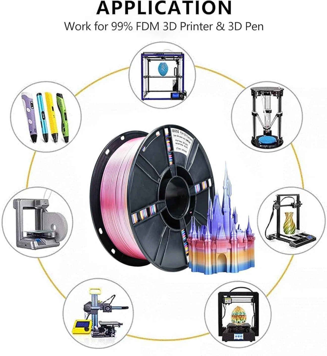 This is 1KG of pink PLA filament, compatible with 99% of FDM 3D printers and 3D pens. It's a versatile material for your 3D printing projects. PLA filament is suitable for creating detailed models and prototypes.