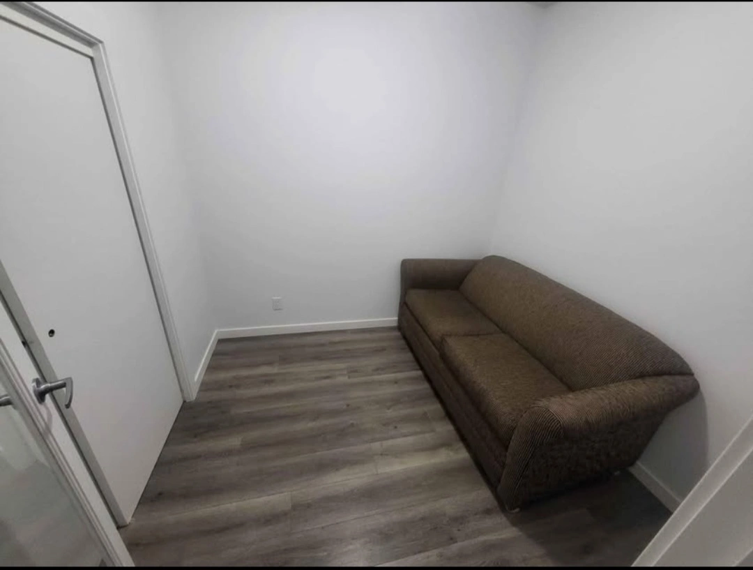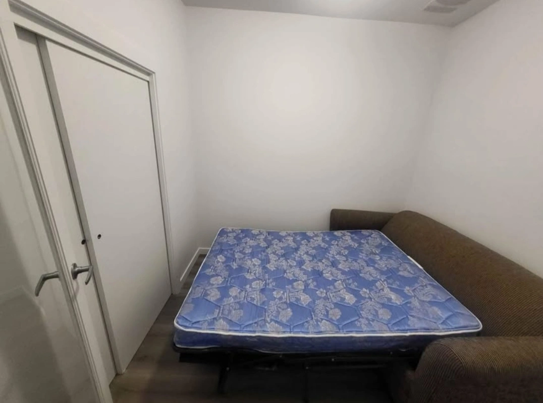 Pull-out sofa bed. Brown fabric. Includes mattress. Good condition.