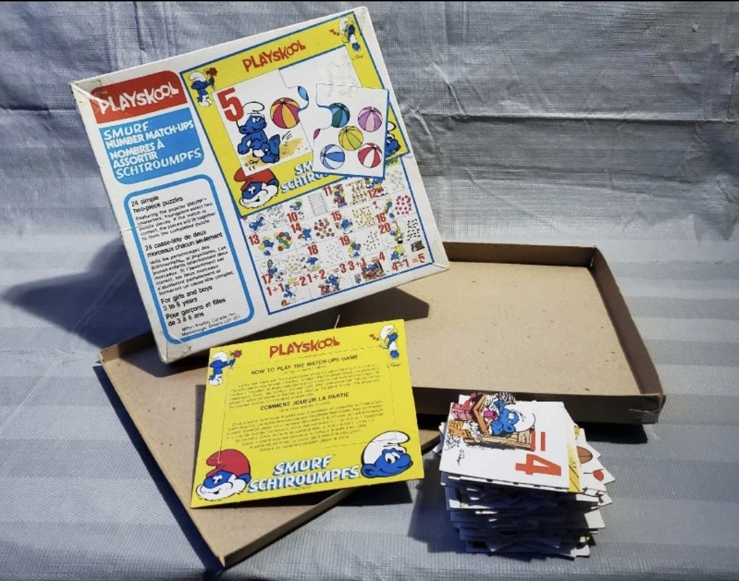 Here we have a vintage complete pre owned 1983 smurf numbers game. Still in good condition for its age. Please see pictures for exact measurements and condition.