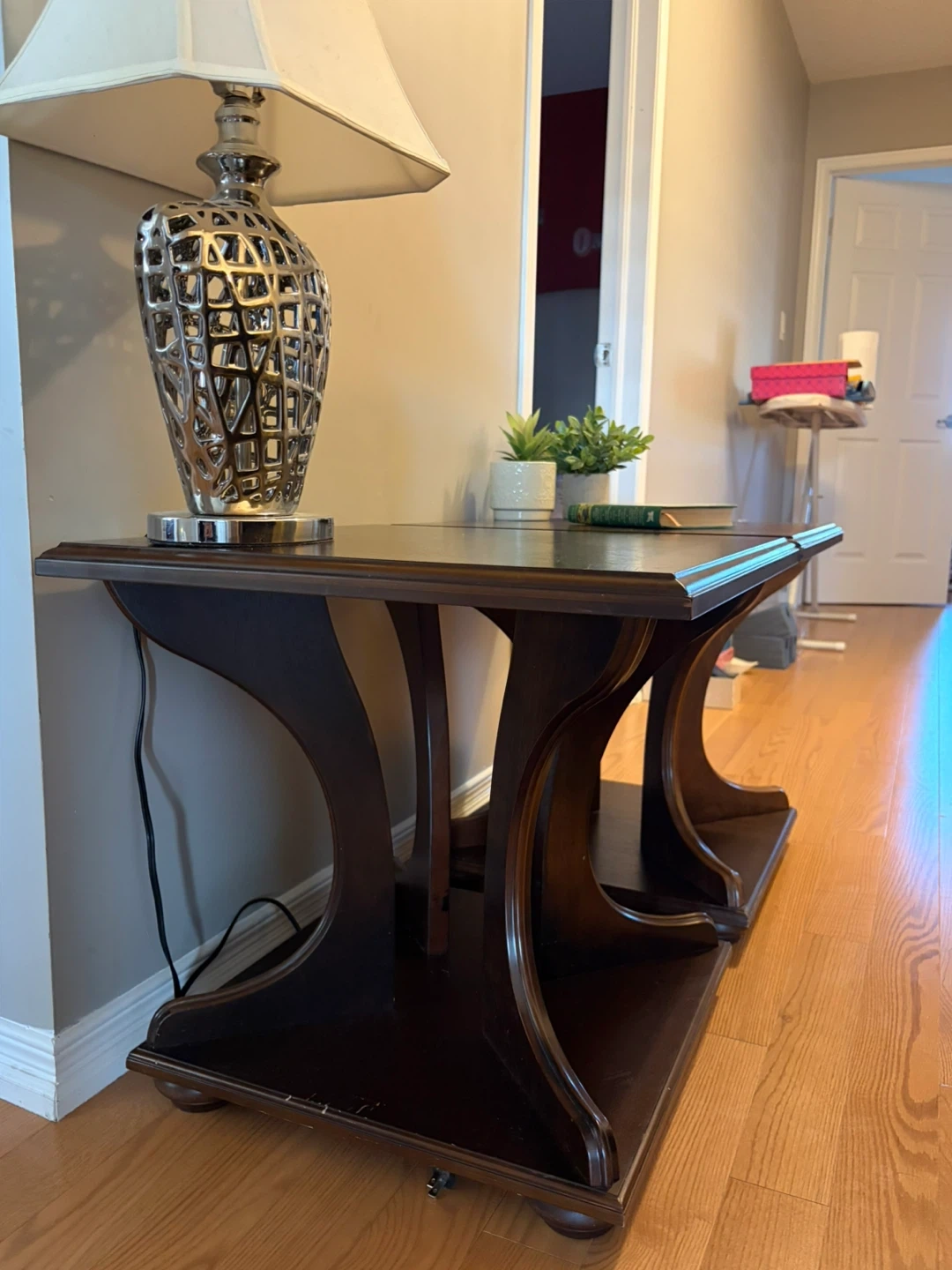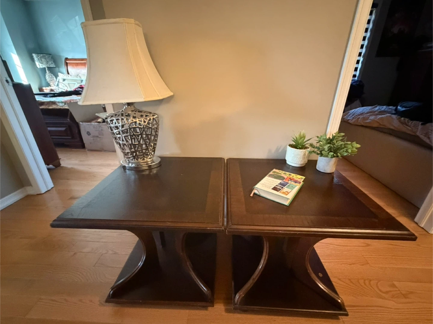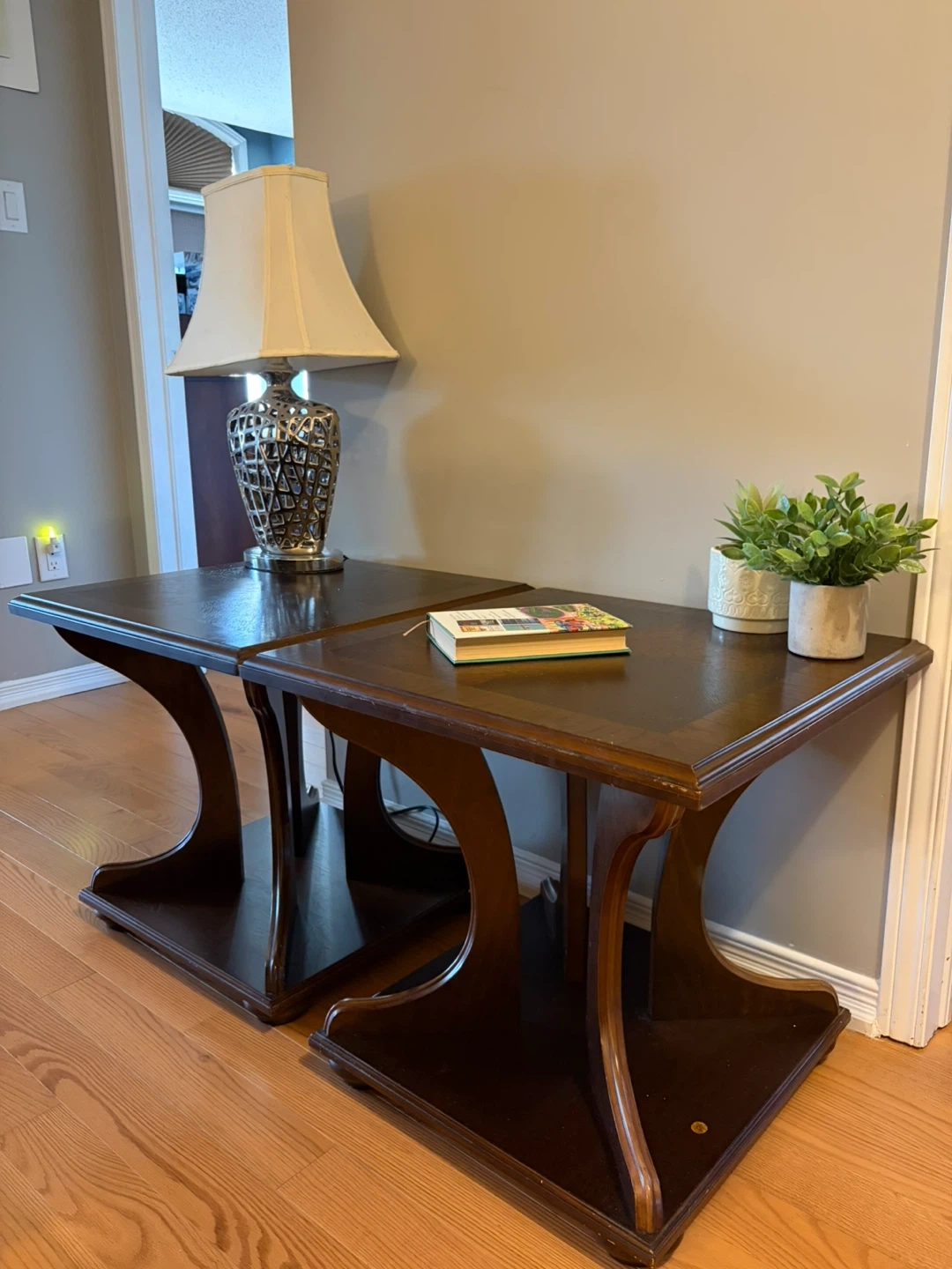 Beautiful solid wood end tables in a rich dark espresso finish. These tables are well-built, heavy, and designed to last – perfect for a living room, bedroom, or staging a home.