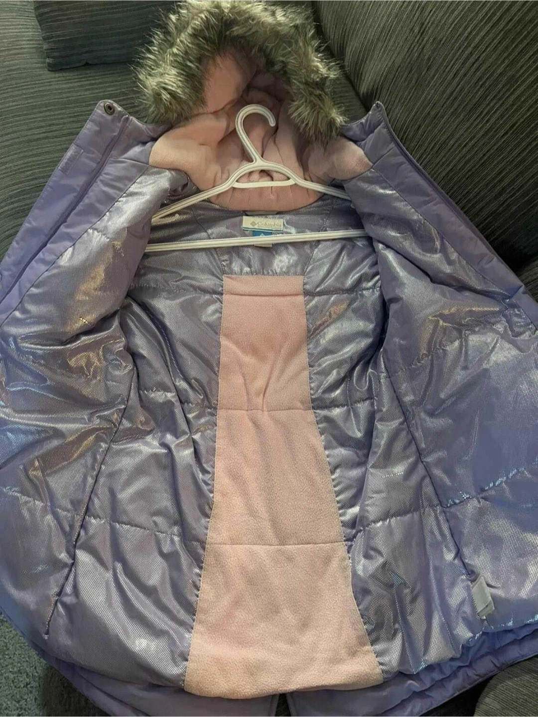 This Columbia girls' insulated winter parka is a great choice for cold weather. It's lavender in colour with a faux-fur trimmed hood. The Omni-Tech fabric provides waterproof and breathable protection. Multiple pockets keep essentials secure.