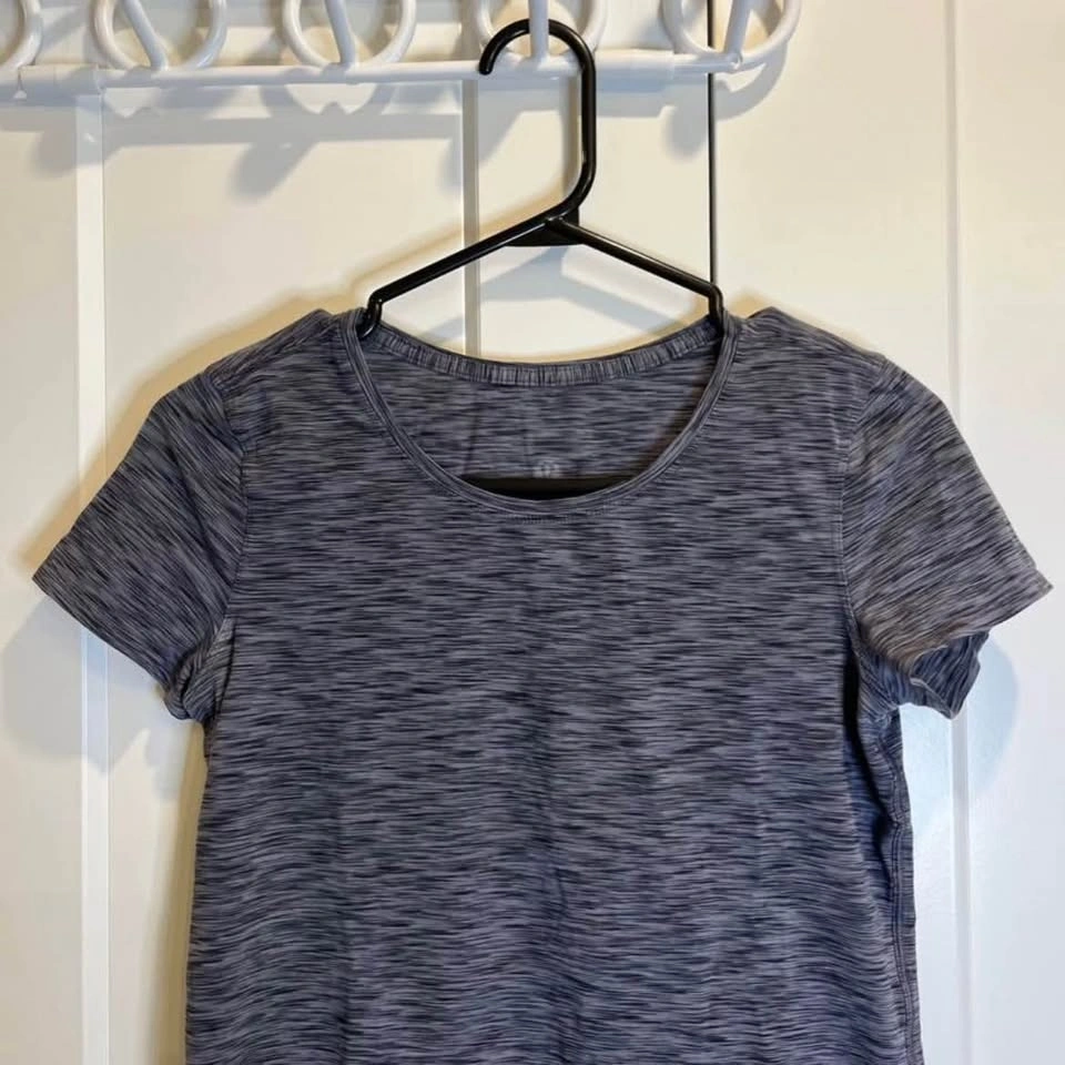 Lululemon women’s t-shirt in heather grey. Scoop neck.