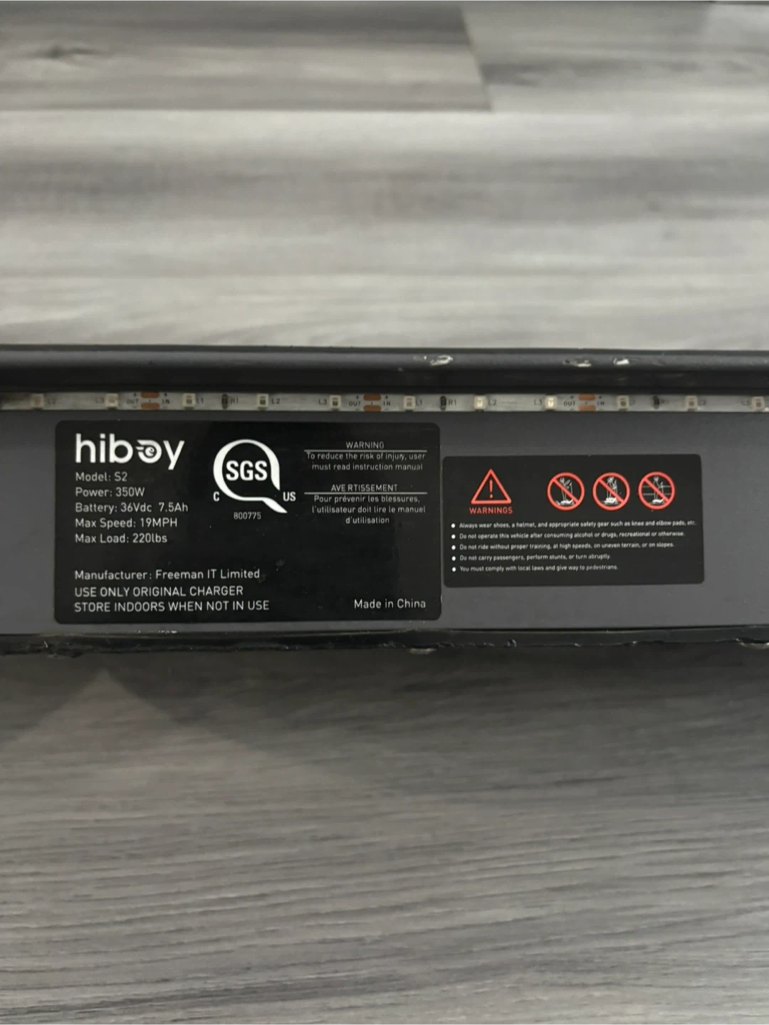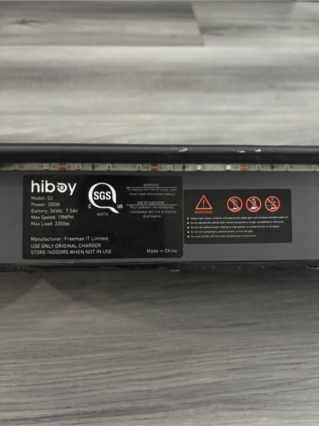 10Selling a Hiboy S2 electric scooter in great condition! It has a max speed of 19mph and can handle a max load of 220lbs. The battery is 36Vdc 7.5Ah. Comes with the original charger. Perfect for getting around town!
