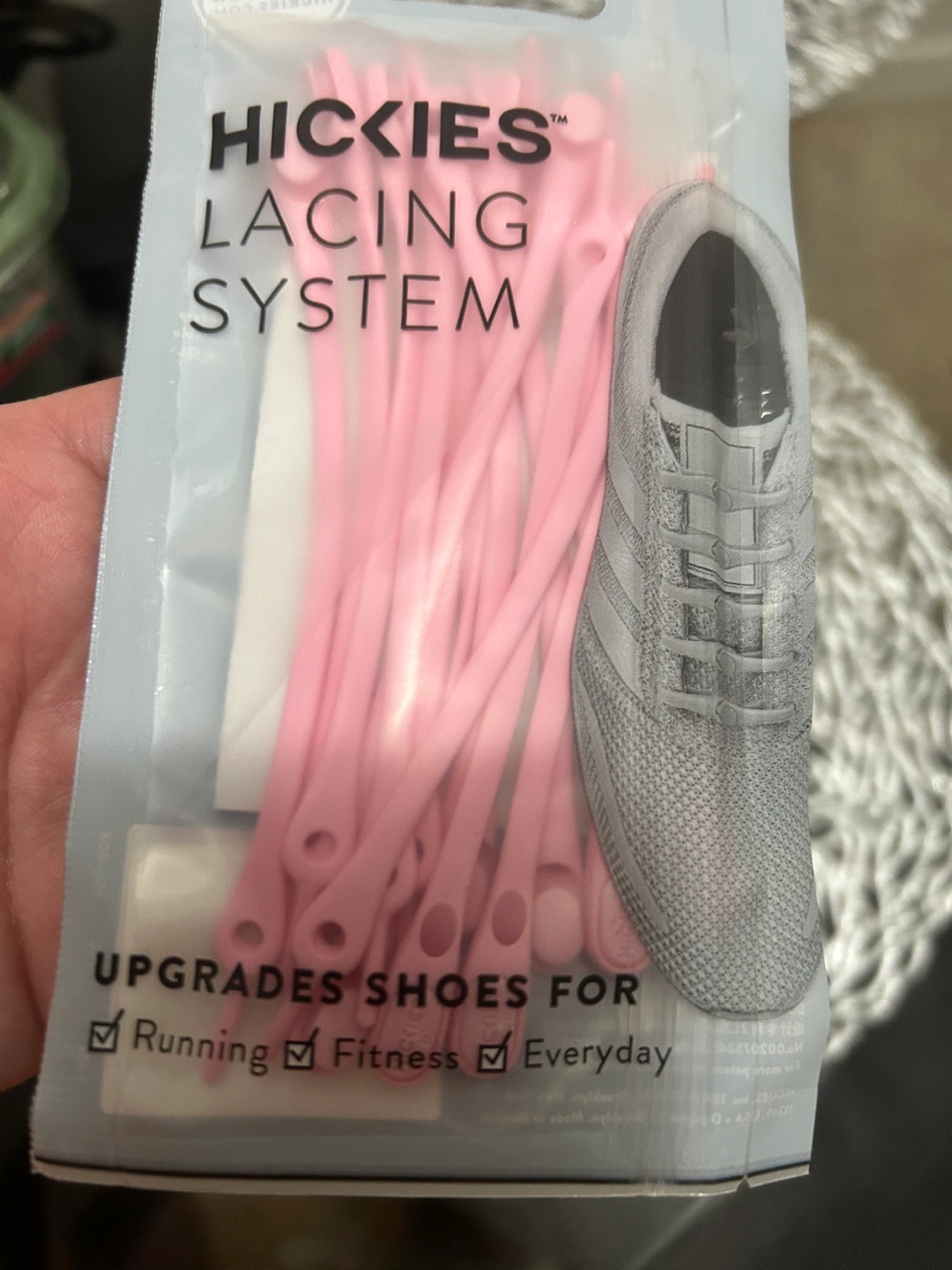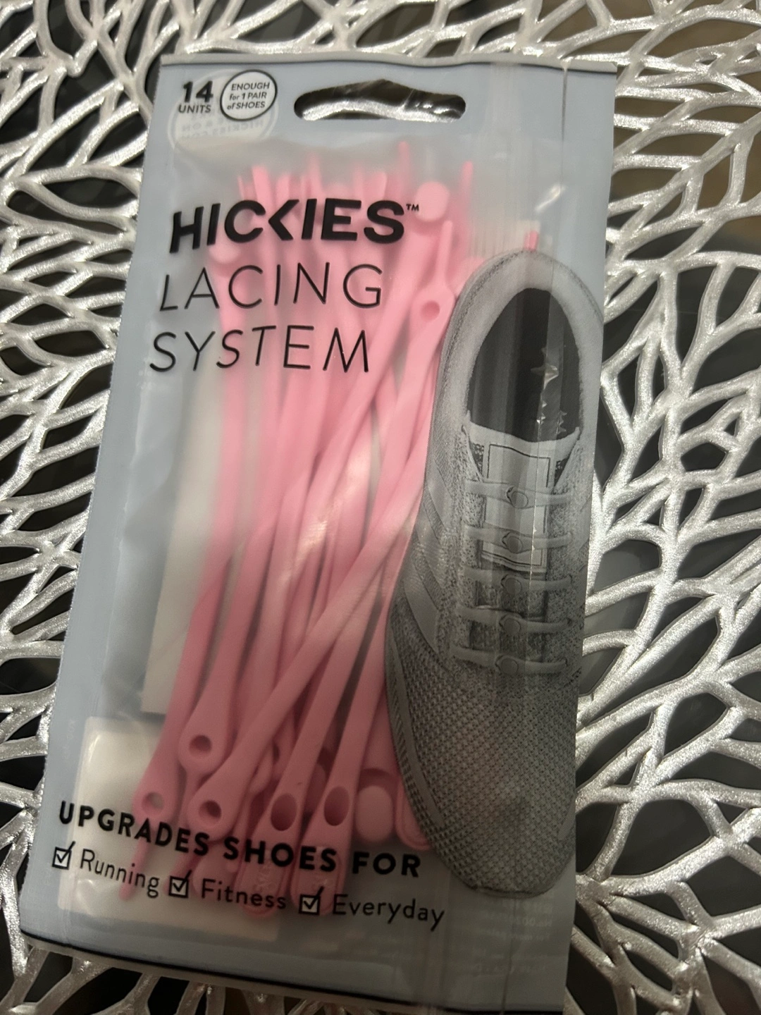 Pink shoelaces. 14 units. Enough for one pair of shoes. Upgrades shoes for running, fitness and everyday wear. Secure no-tie design. One-size adjustable fit. Durable elastic compression.