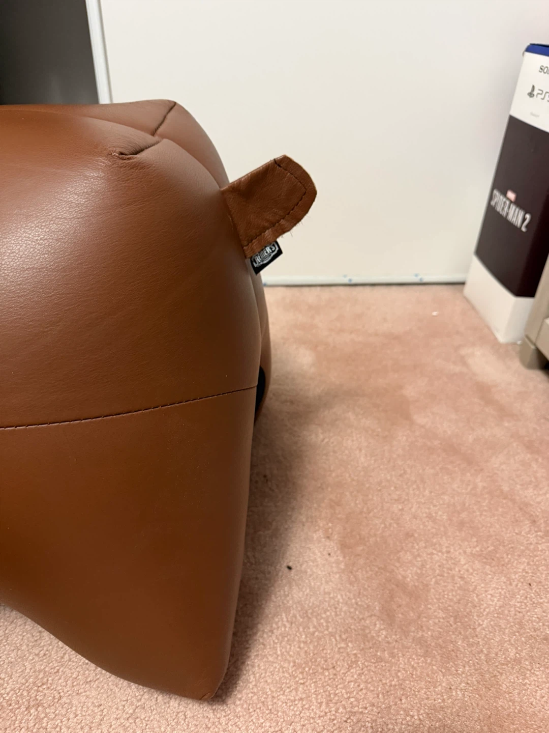 This fun moose ottoman is covered in brown faux leather. It's perfect for a living room, a bedroom, or as a playful accent piece. The sturdy construction offers an elegant display. Made with faux leather and fabric.