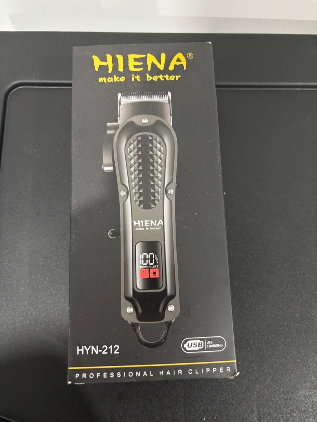 Cordless hair clipper. USB charging. Digital power display. Black.