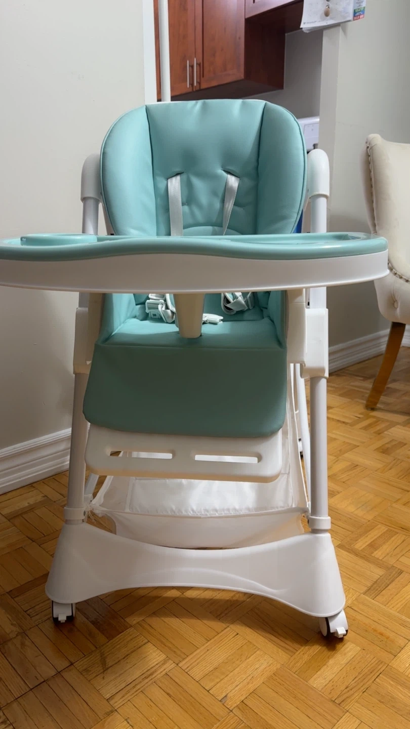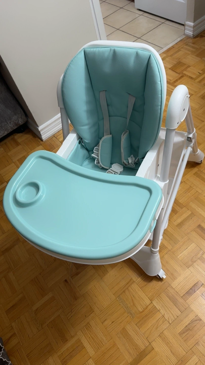 High chair in a lovely teal colour! It's in great condition and ready for a new home. Perfect for meal times with your little one. Best offer