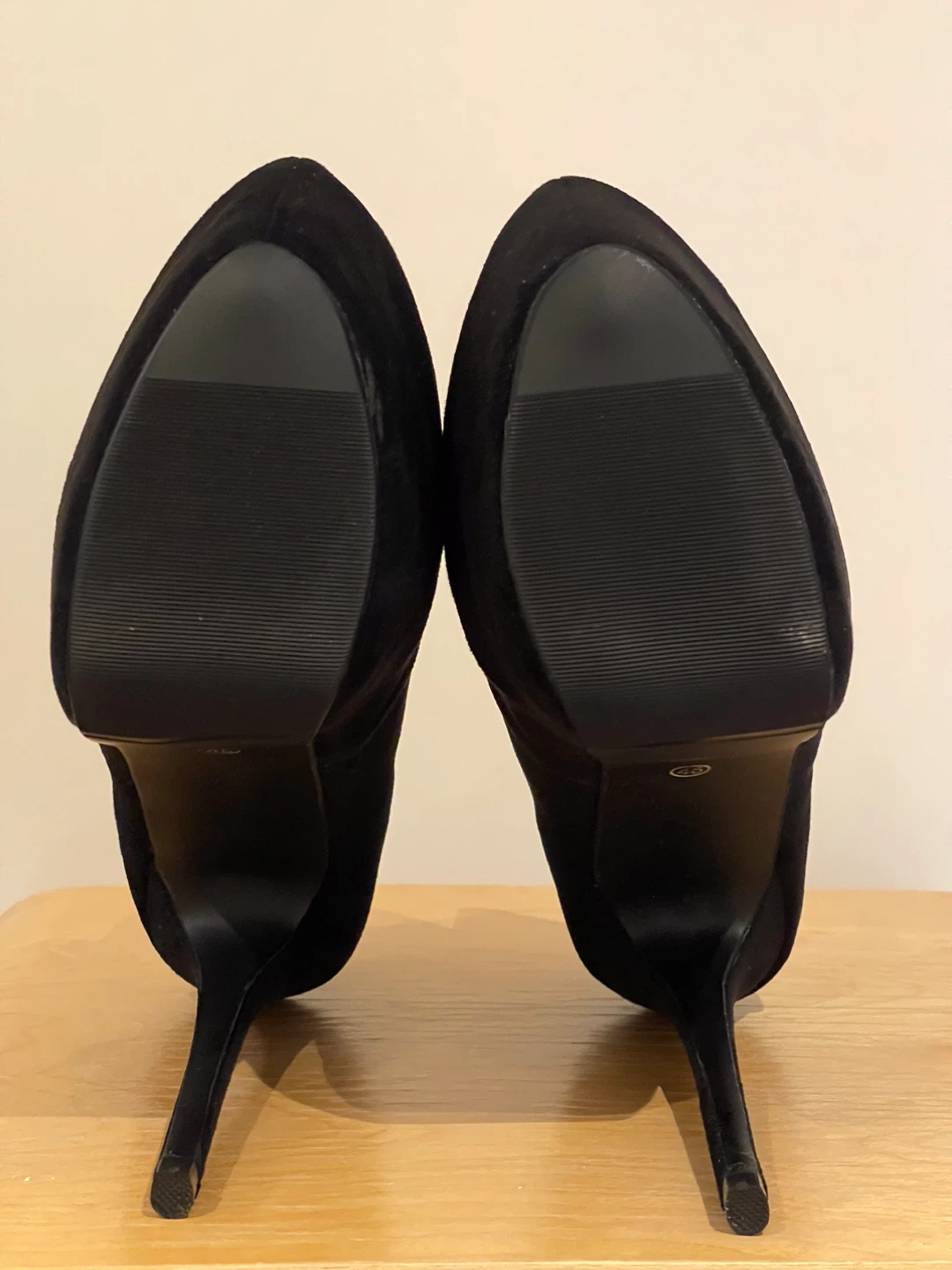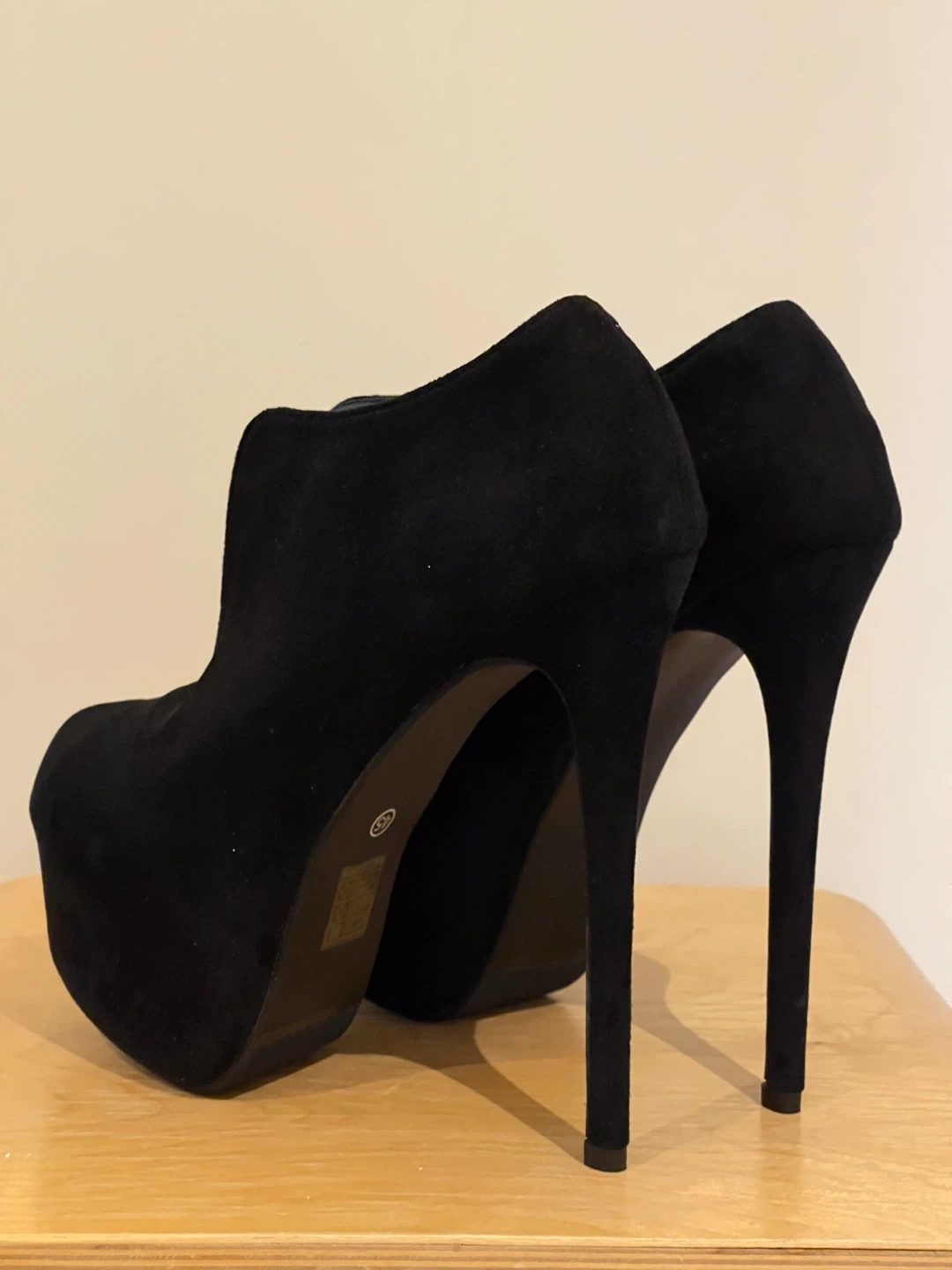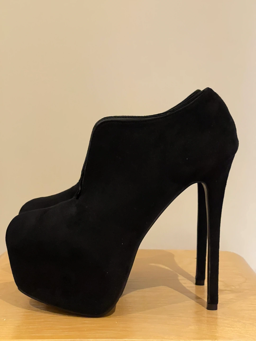 Selling a pair of black suede platform high heel booties. BRAND NEW NEVER WORN. Size 45 would be 11.5/12 MEN Pick up at Yonge and Sheppard Cash only