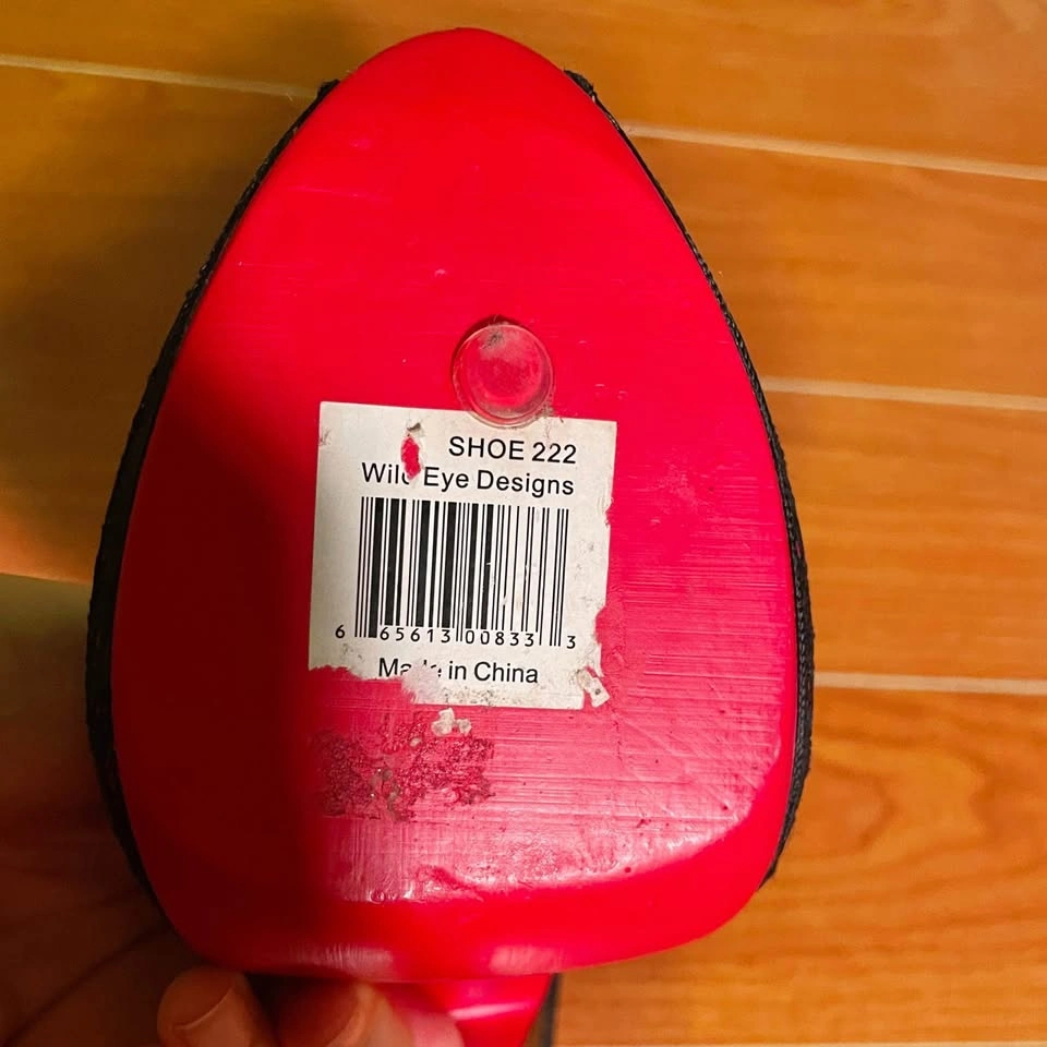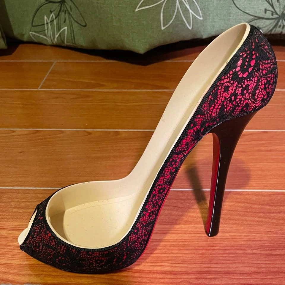 64Pick up at Don Mils & Steeles Add a touch of glamour to your space with this elegant high-heel wine bottle holder. Designed in chic red and black lace with a peep-toe style, it’s a perfect display piece for any wine lover or shoe enthusiast. Condition: Excellent — no tipping or major damage. From the High Heel Wine Caddy Collection, this stunning piece holds any standard-size wine bottle (up to 25 fl. oz. / 750ml). The Wild Eyes Red & Black Lace High Heel Wine Bottle Holder brings the perfect mix of style and fun — giving your favorite wine the spotlight it deserves.