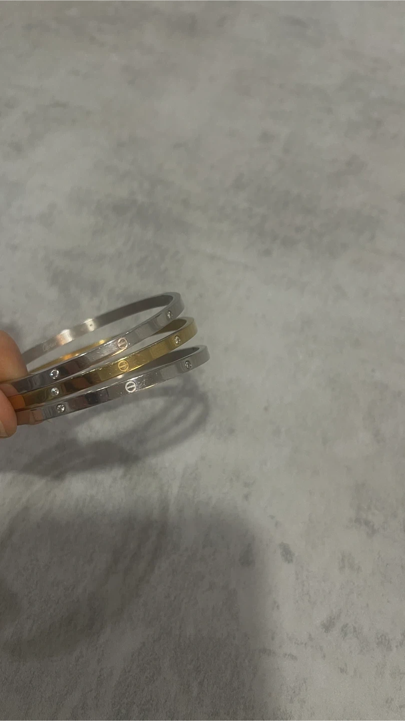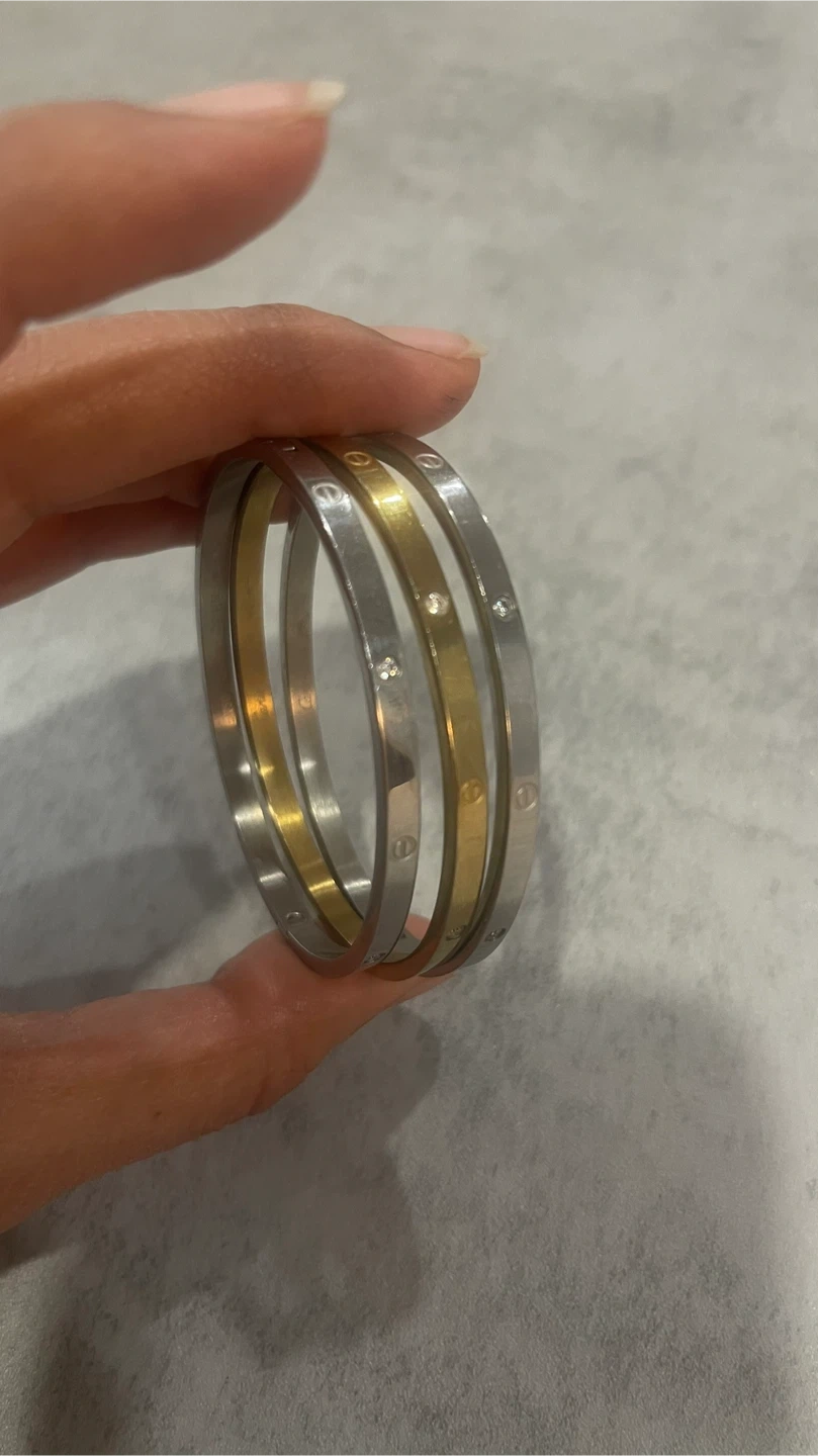43Selling a three bracelets in excellent condition. Includes one gold and two silver bracelets. A timeless and elegant addition to any collection!