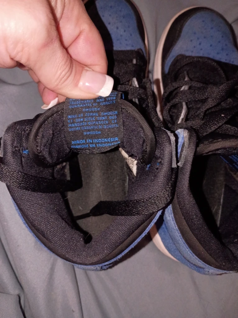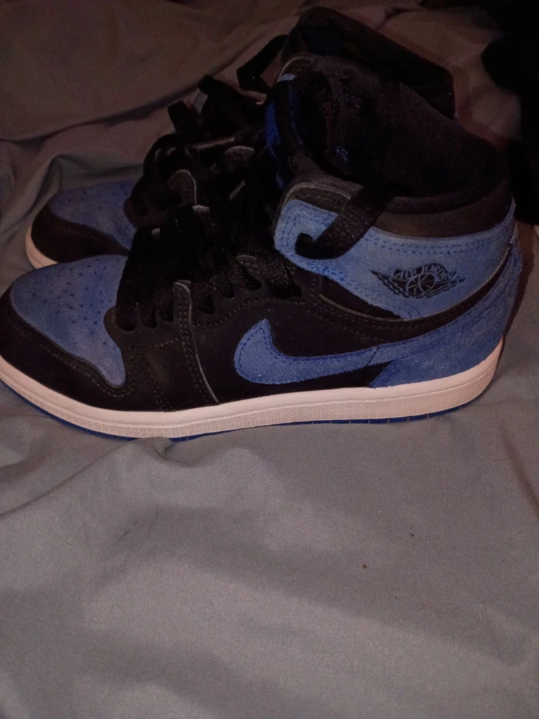 20Nike Air Jordan 1 High shoes in blue and black. They're in good condition and ready for a new home!