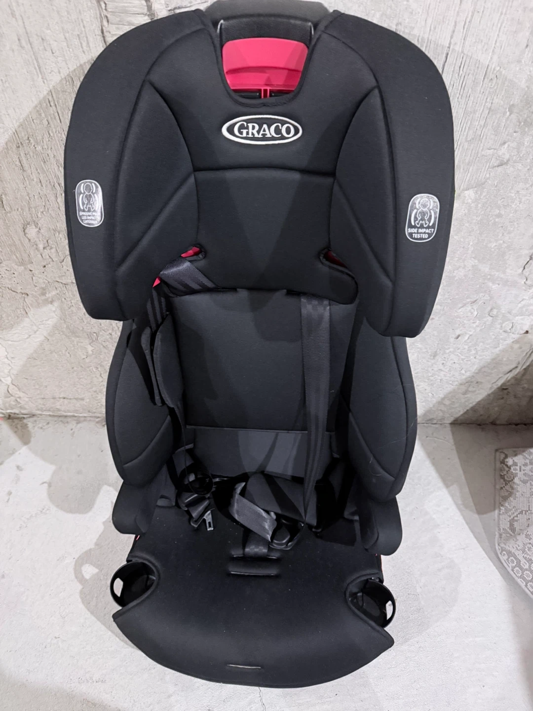 Graco Tranzitions 3-in-1 car seat. Converts from a 5-point harness to a highback booster and then a backless booster. It's designed for kids from 10-45 kg (22-100lb).