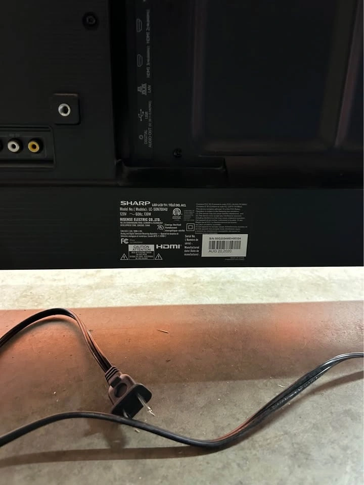 Selling a Sharp 50-inch 4K Roku Smart TV in great working condition. Screen is clean with no cracks or damage. Fully tested — picture, sound, HDMI ports, and smart features all work perfectly.