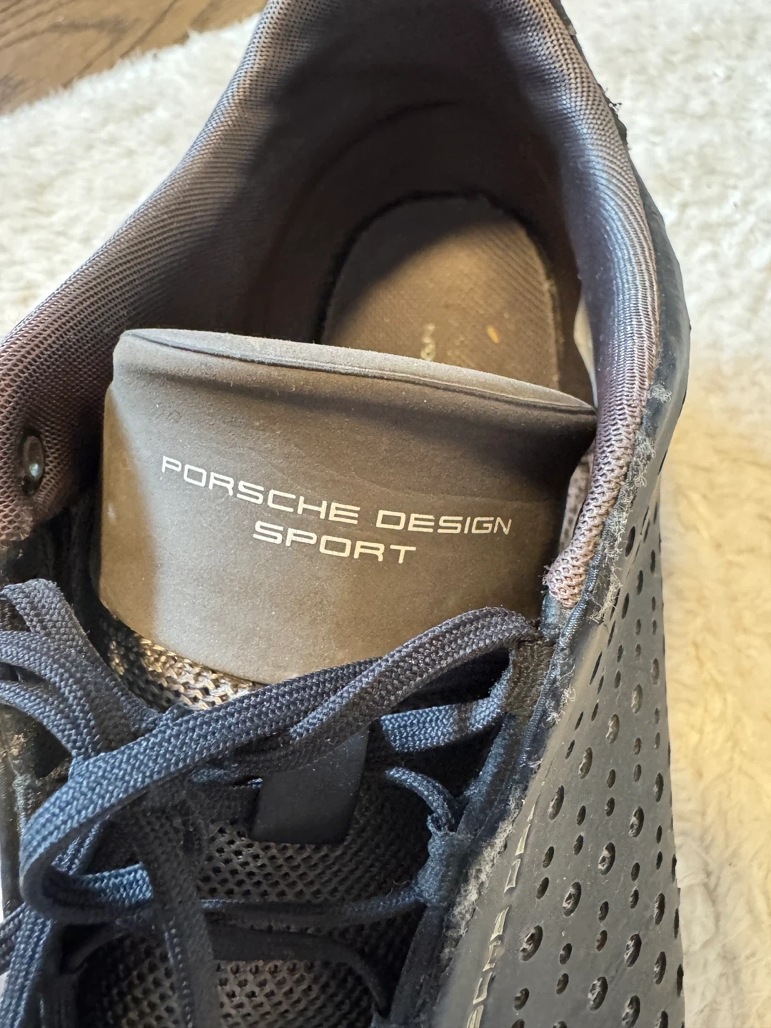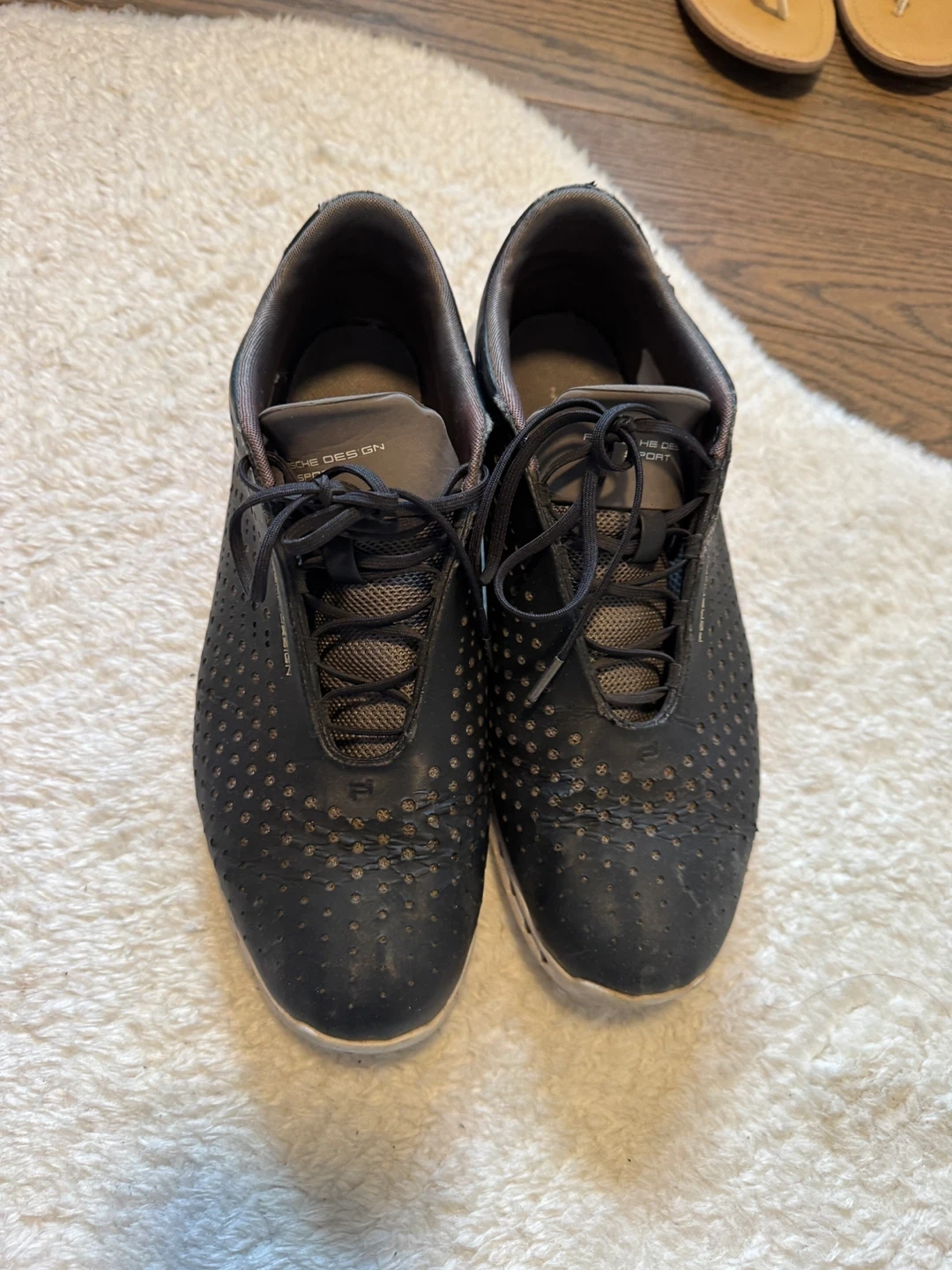 These black Porsche Design Sport sneakers feature a perforated design and lace-up closure. They appear to be a men's size.
