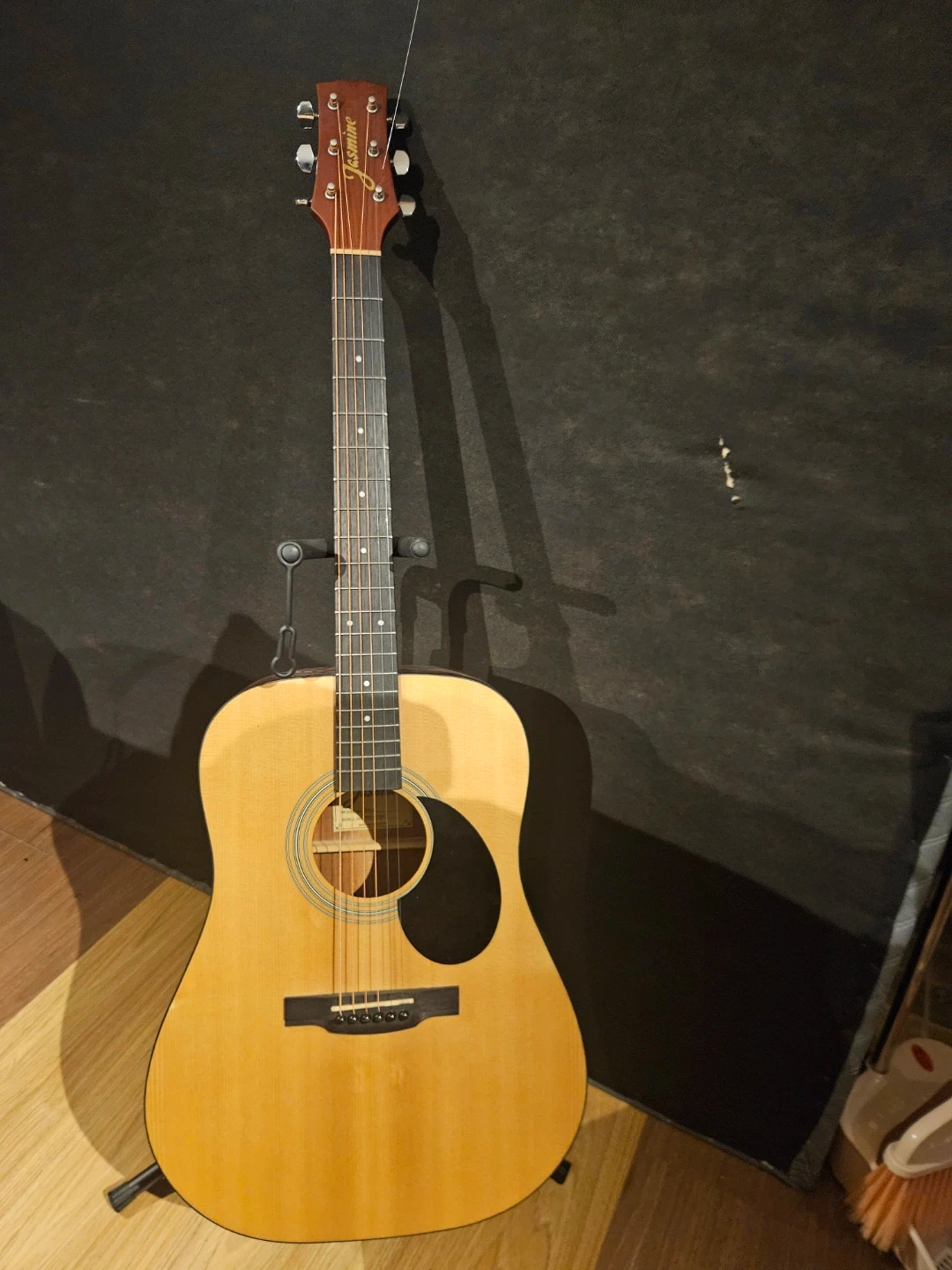 Buy & SellJasmine Acoustic GuitarJasmine Acoustic Guitar$220This is a Jasmine acoustic guitar. It has a natural wood finish and a black pickguard. A guitar stand is also included.ConditionLike newWHERE TO MEETCheck LocationView MapSELLERverifiedMaryThornhill1265 reviews0 chats·0 favorites·11 viewsSEND CHAT TO SELLERHi Mary! I’m interested in your listing.Hi Mary! I’m interested in your listing.Get the Karrot app to chatSign In to chat
