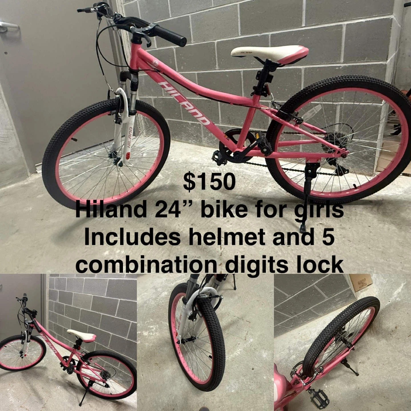 10Selling a Hiland 24-inch bike for girls! It comes in a lovely pink colour and includes a helmet and a 5-digit combination lock. Great for kids who are learning to ride or need a reliable bike for getting around.