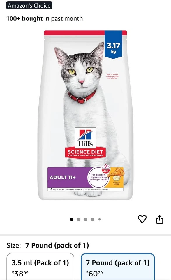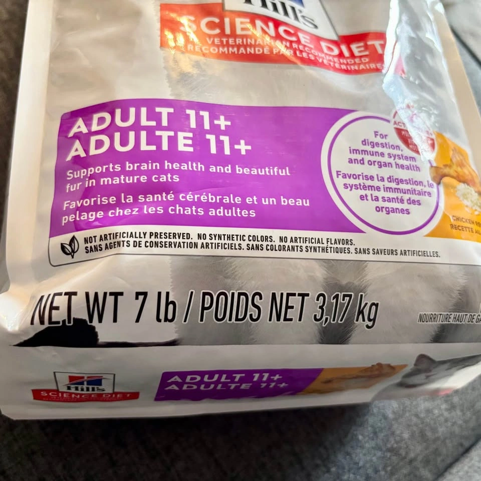 0Hills Science Diet brand cat food for senior cats 11+. Chicken flavour. Bag is pretty much full, only used about 2 scoops. Pick up in Millrise (SW).