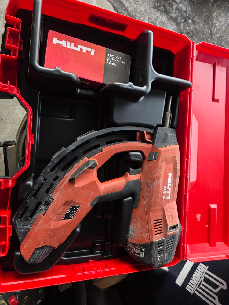 Used Hilti GX 3 direct fastening tool. Includes carrying case. Shows wear from use. See photos for details.