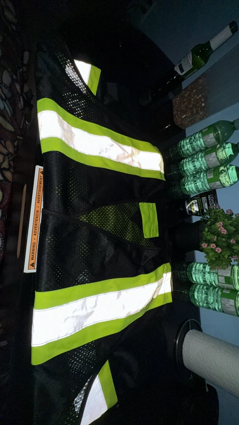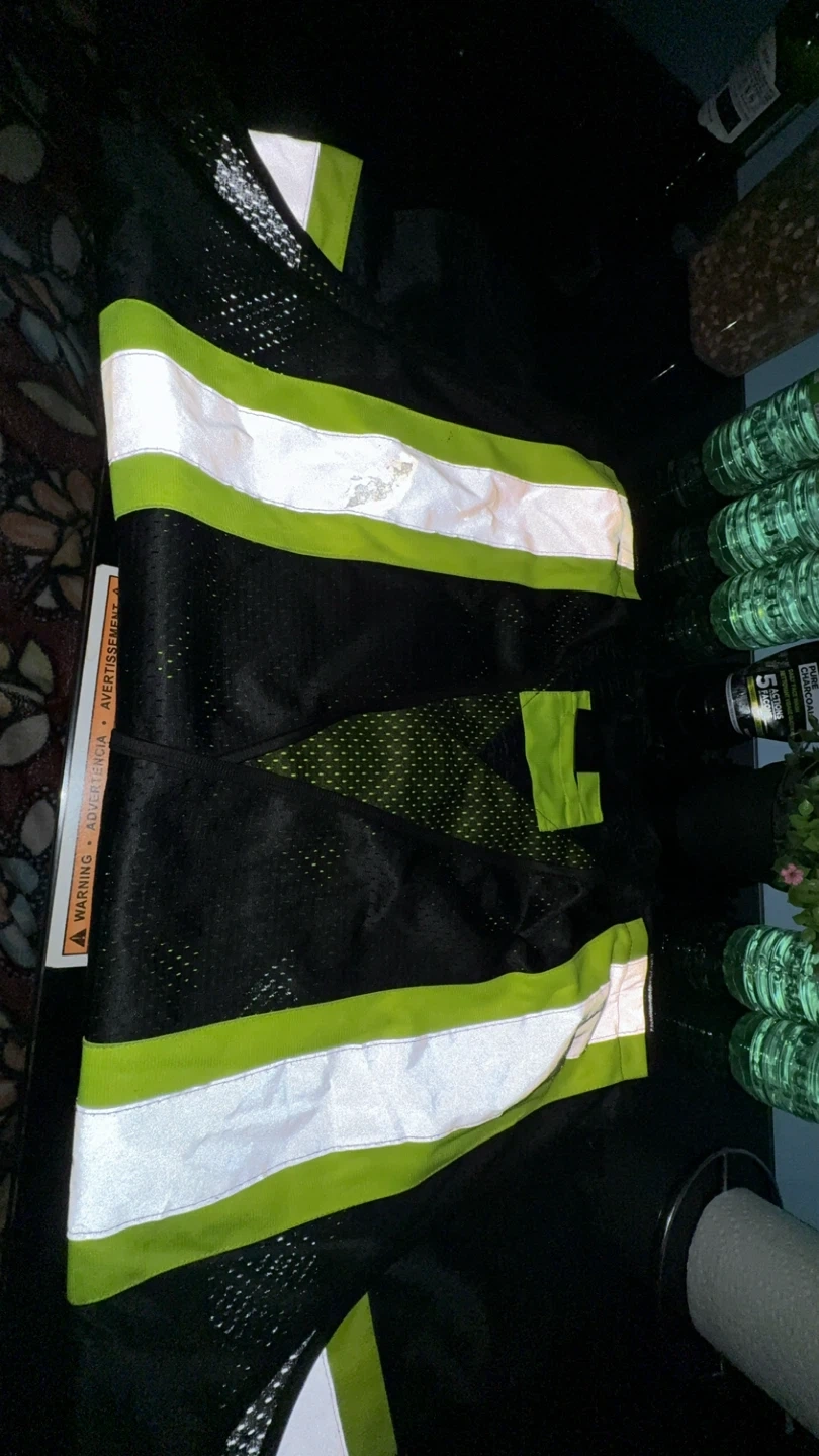 Selling a high visibility safety vest in black and green. Great for staying visible during outdoor activities or work! 2Xl