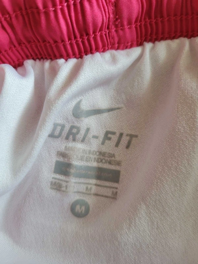 Get ready to sprint in style with these vibrant pink Nike running shorts, size medium, perfect for adding a pop of colour to your workout wardrobe. These shorts have a black and white stripe on the side. Showing some signs of use, but ready for a new home! Size: Medium Colour: Pink Brand: Nike