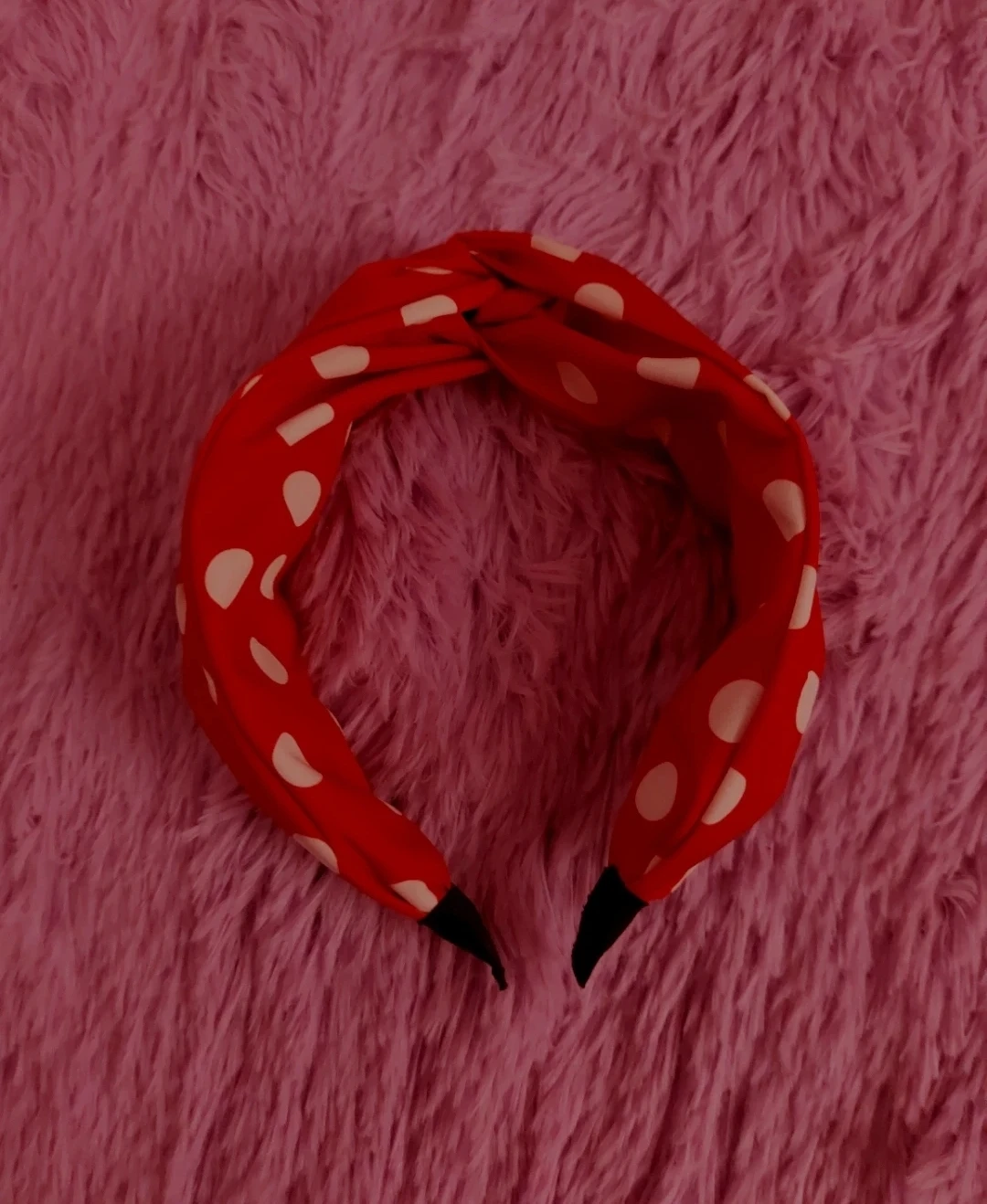 A cute red headband with white polka dots! It's in great condition and ready to add a pop of fun to your outfit