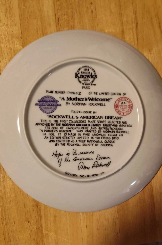 Knowles Norman Rockwell Plate - A Mother's Welcome