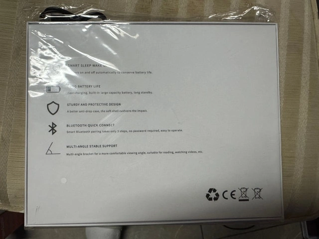 This new wireless keyboard case is designed for seamless use with your tablet, offering both protection and enhanced functionality. The keyboard connects via Bluetooth for quick pairing and features a multi-angle stand for comfortable viewing. Its smart sleep/wake function helps conserve battery life, ensuring your device is always ready when you are. This product offers a sturdy and protective design and is still sealed in its original packaging. Key Features: Smart Sleep/Wake Function, Long Battery Life, Sturdy and Protective Design, Bluetooth Quick Connect, Multi-Angle Stable Support.