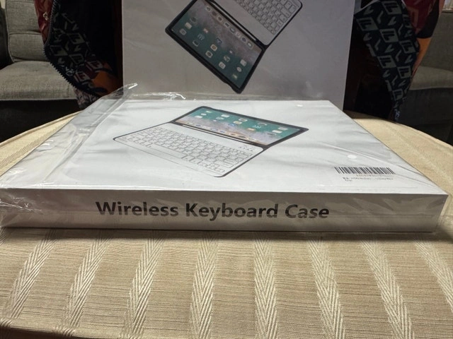 This new wireless keyboard case is designed for seamless use with your tablet, offering both protection and enhanced functionality. The keyboard connects via Bluetooth for quick pairing and features a multi-angle stand for comfortable viewing. Its smart sleep/wake function helps conserve battery life, ensuring your device is always ready when you are. This product offers a sturdy and protective design and is still sealed in its original packaging. Key Features: Smart Sleep/Wake Function, Long Battery Life, Sturdy and Protective Design, Bluetooth Quick Connect, Multi-Angle Stable Support.