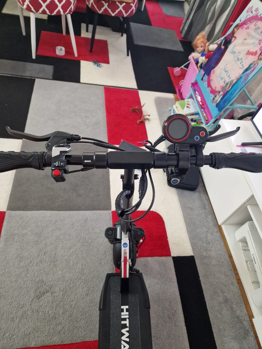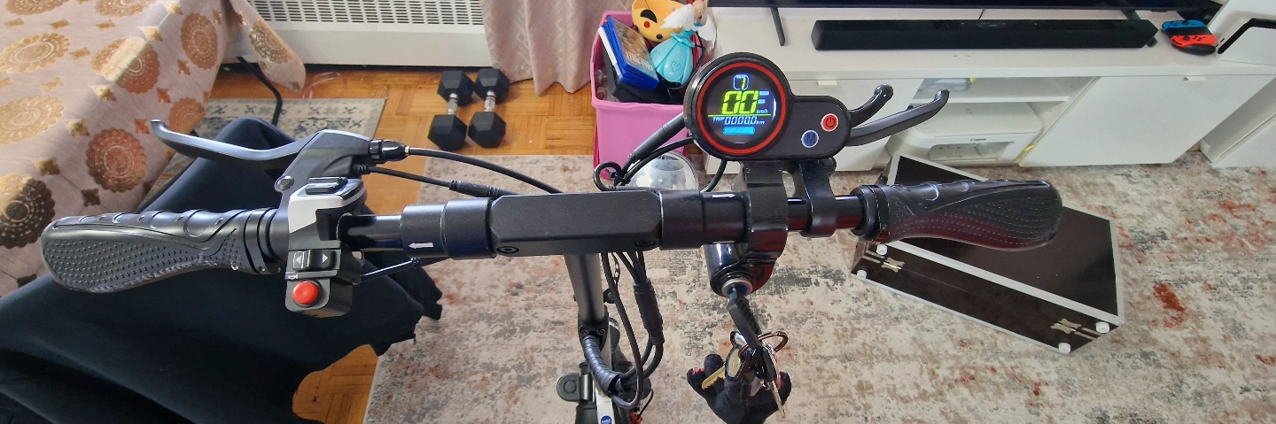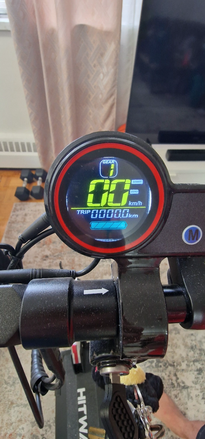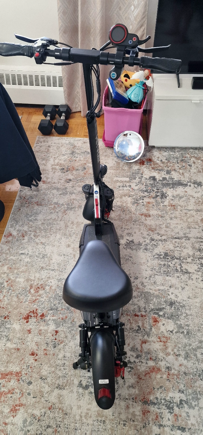 10Adult electric scooter. Features a digital display, comfortable seat, and front suspension. Good condition. Includes key. Brand New, bought in the UK but never used. Can go up to 45KM, has 3 gears, battery life for 45KM. Comes with everything including receipts but no original box. Price negotiable 6475614369