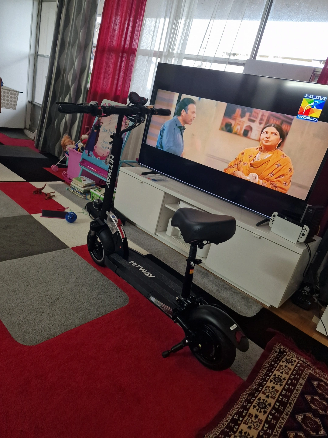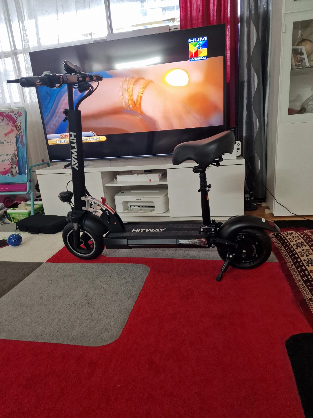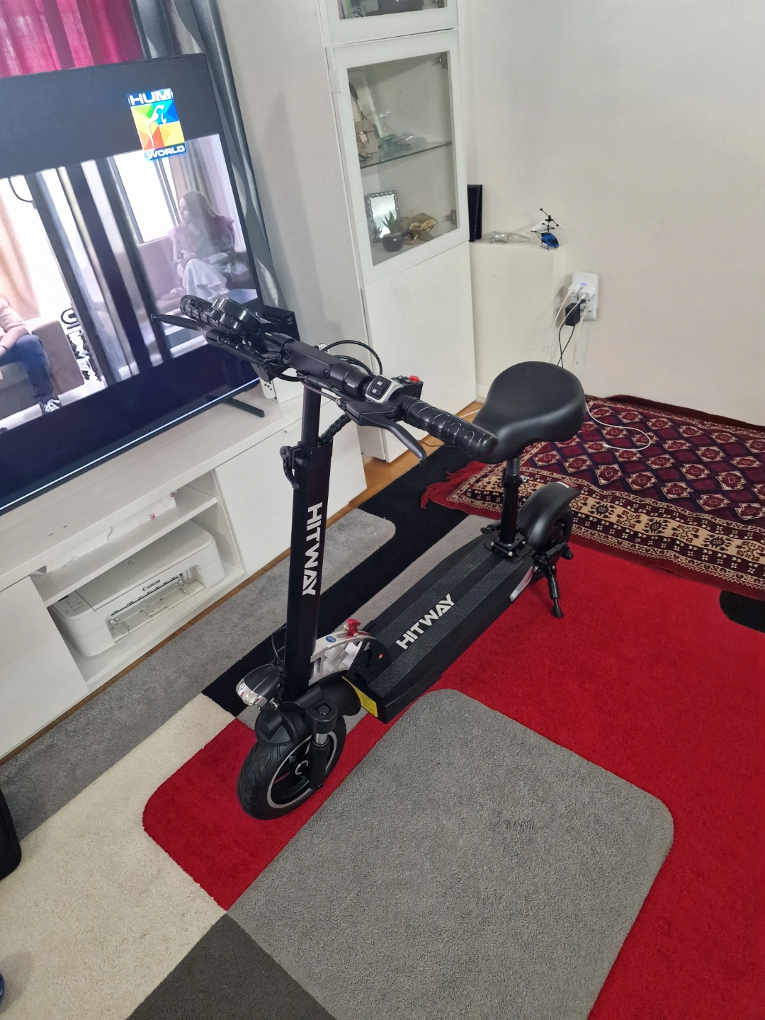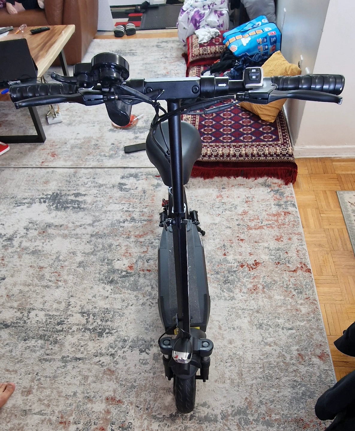 10Adult electric scooter. Features a digital display, comfortable seat, and front suspension. Good condition. Includes key. Brand New, bought in the UK but never used. Can go up to 45KM, has 3 gears, battery life for 45KM. Comes with everything including receipts but no original box. Price negotiable 6475614369