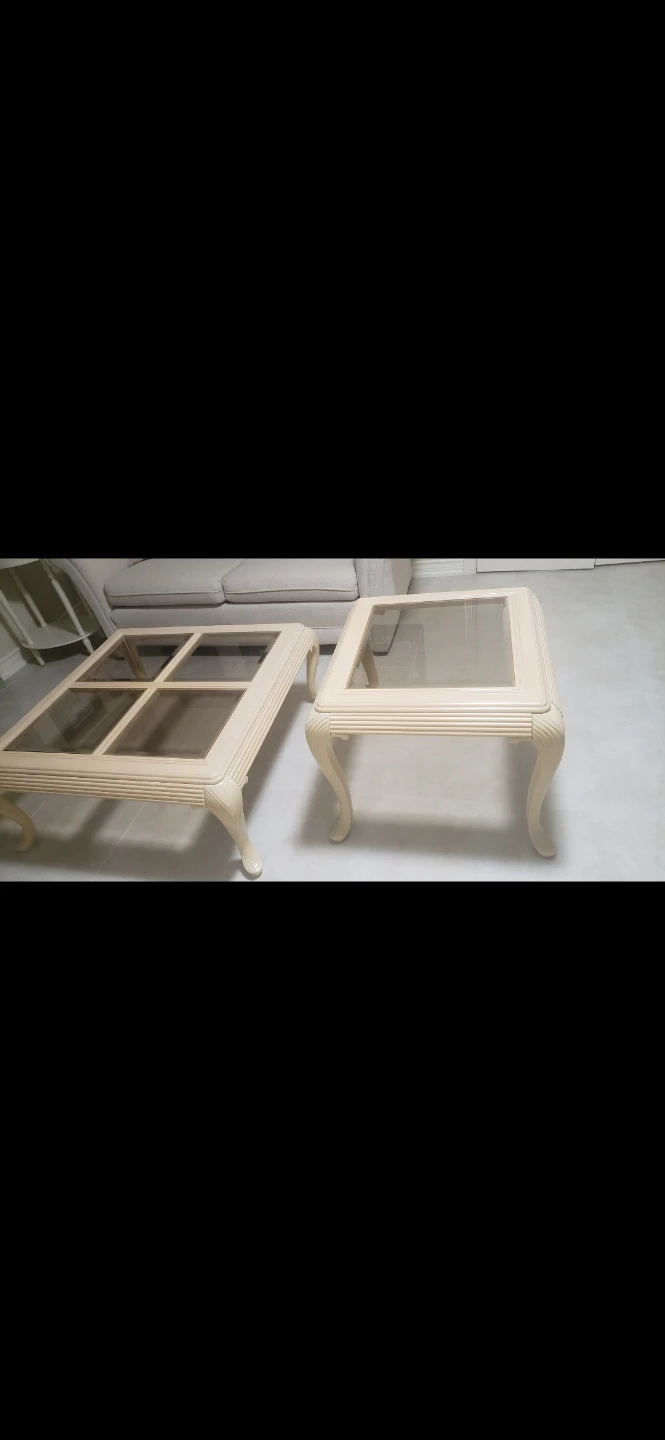 Matching Cream Side Table and Coffee Table Set
