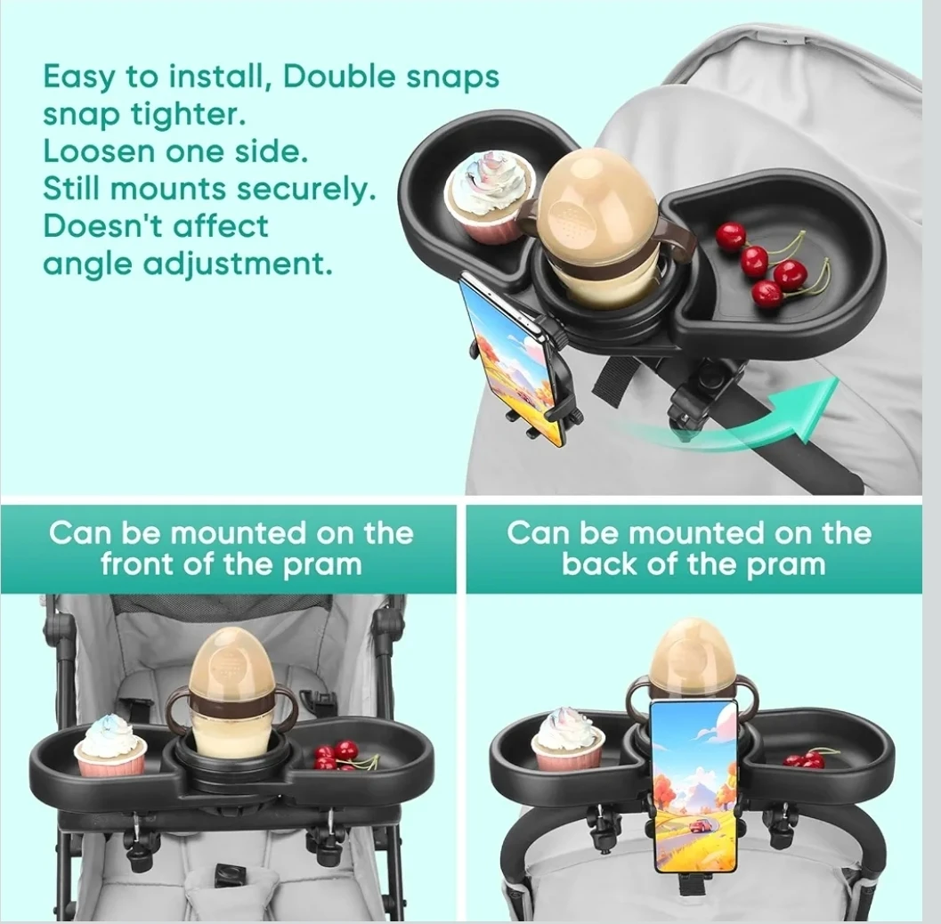 Universal Stroller Snack Tray with Cup Holder & Phone Mount