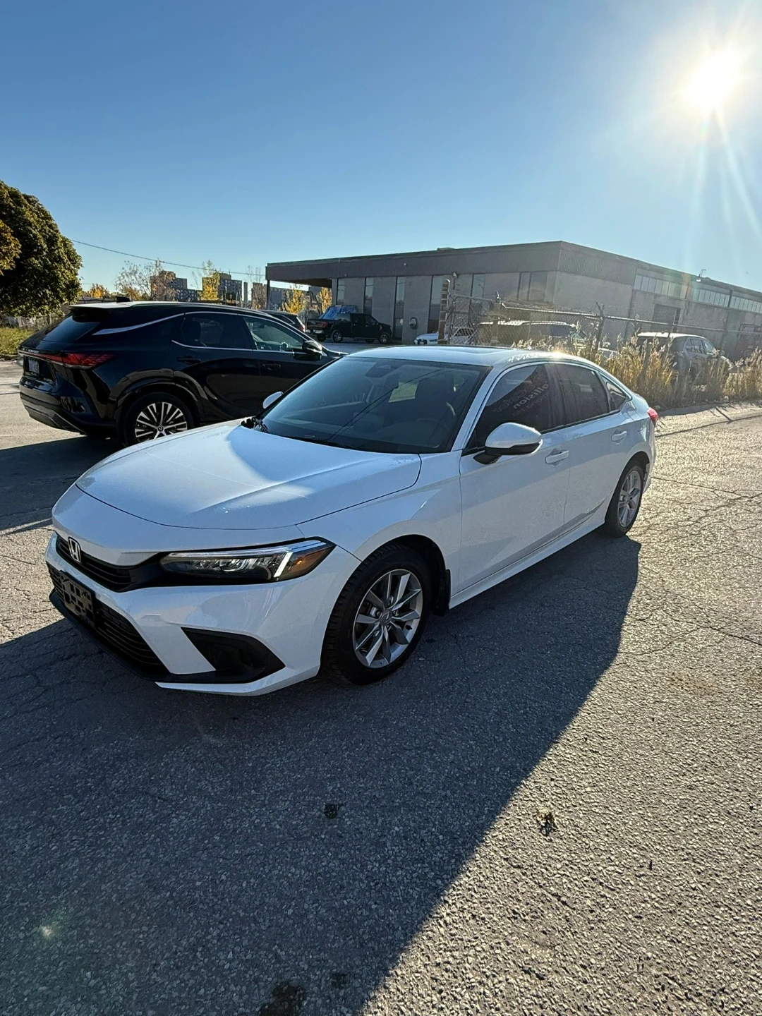 This is a white Honda Civic sedan. It features a modern interior with a touchscreen infotainment system and comfortable seating. It's a reliable and stylish vehicle for everyday driving.