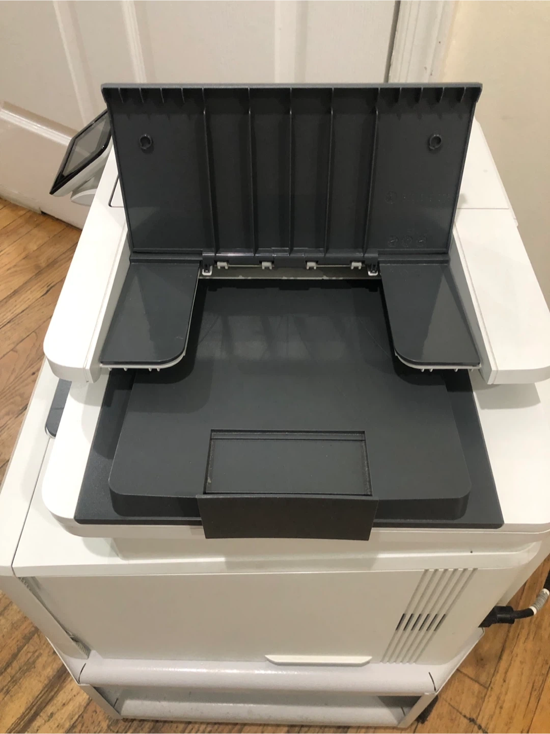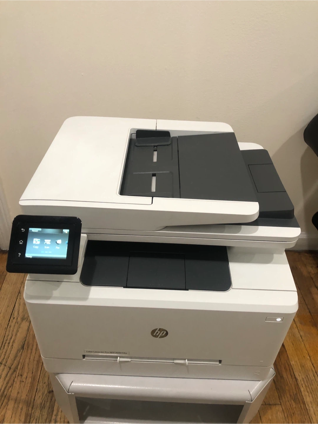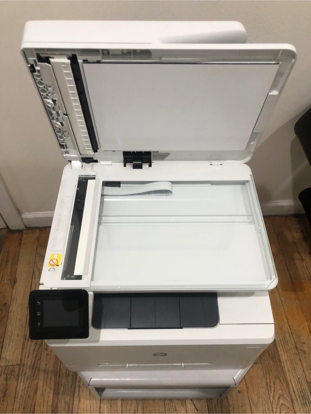 HP LaserJet Pro MFP M428fdw printer. Manufactured August 22, 2018. Includes scanner, copier, and fax functions. This is a monochrome laser printer.