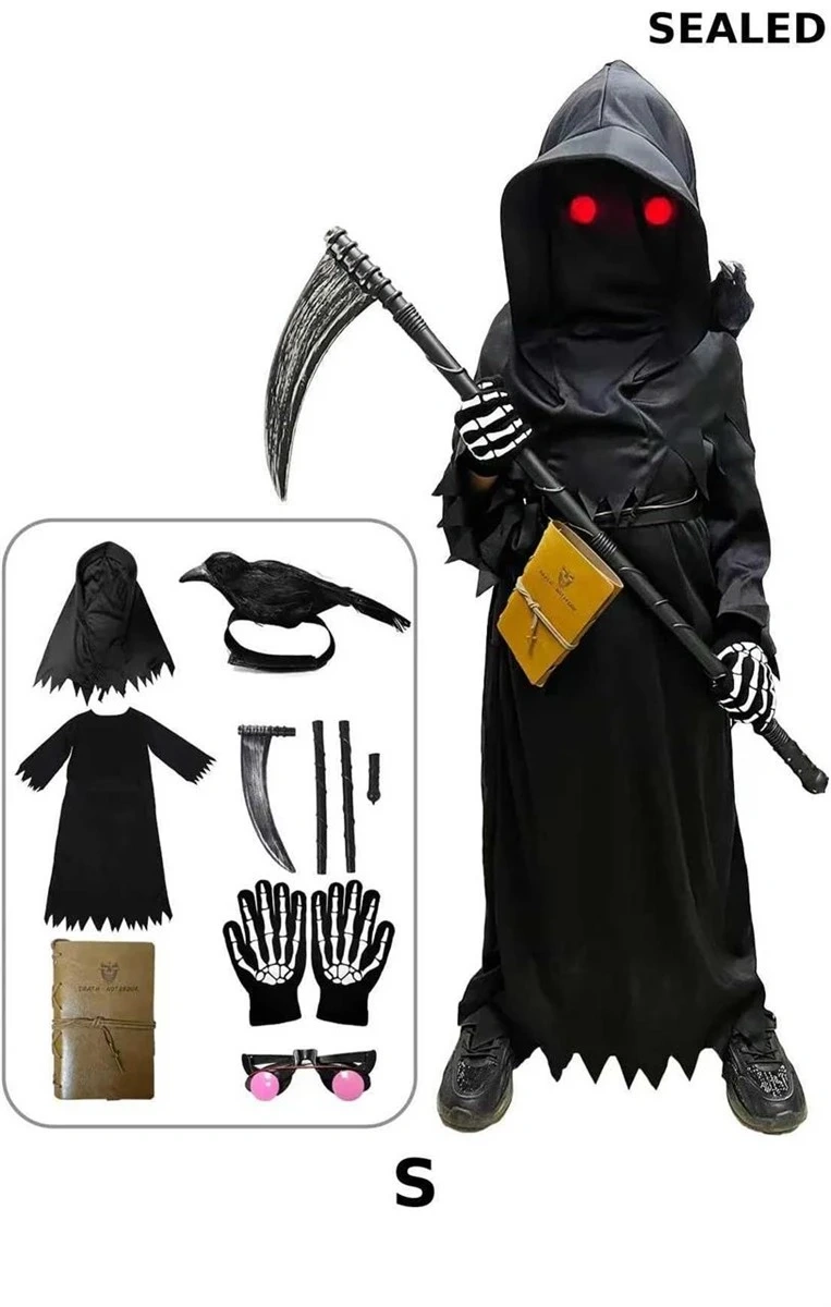 Kids Grim Reaper Costume Set with Scythe and Accessories