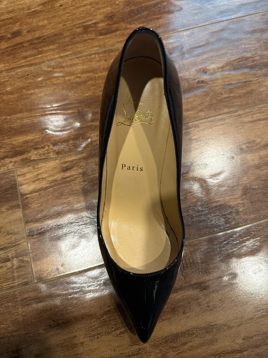 Elegant Christian Louboutin heels in shiny black patent leather. Features the iconic red sole. A classic statement shoe for any occasion! Size 38 1/2 only worn a couple of times and in excellent condition. They regularly sell for around $1000.00