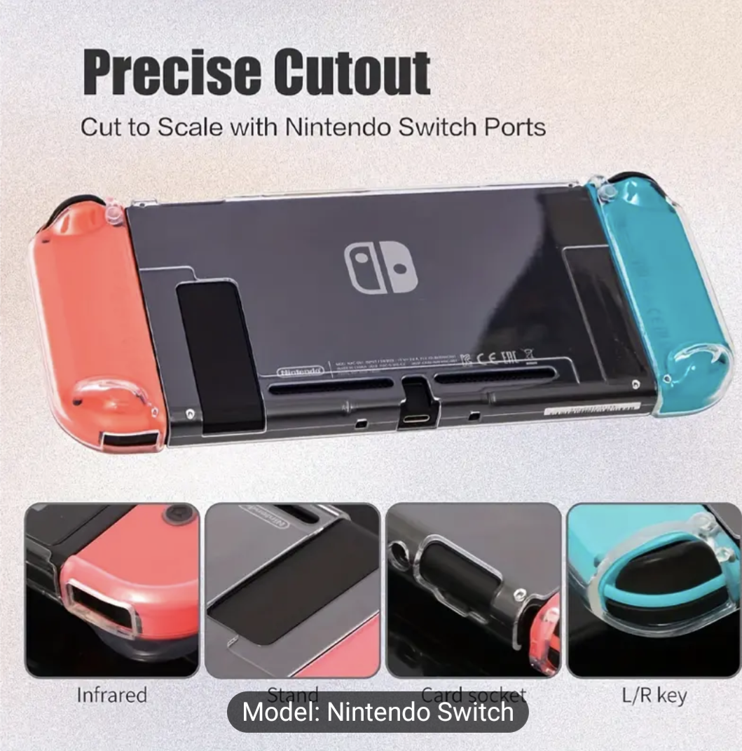 Nintendo Switch Crystal Clear Case with Thumb Grip Caps