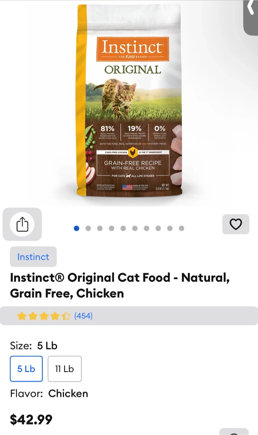 Instinct Original Cat Food - 5 Lb Bag and wet food