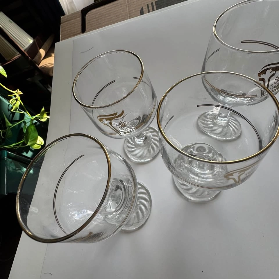 - The glasses were part of a set that included various styles such as wine glasses, brandy snifters (like the one pictured), and pilsner glasses.