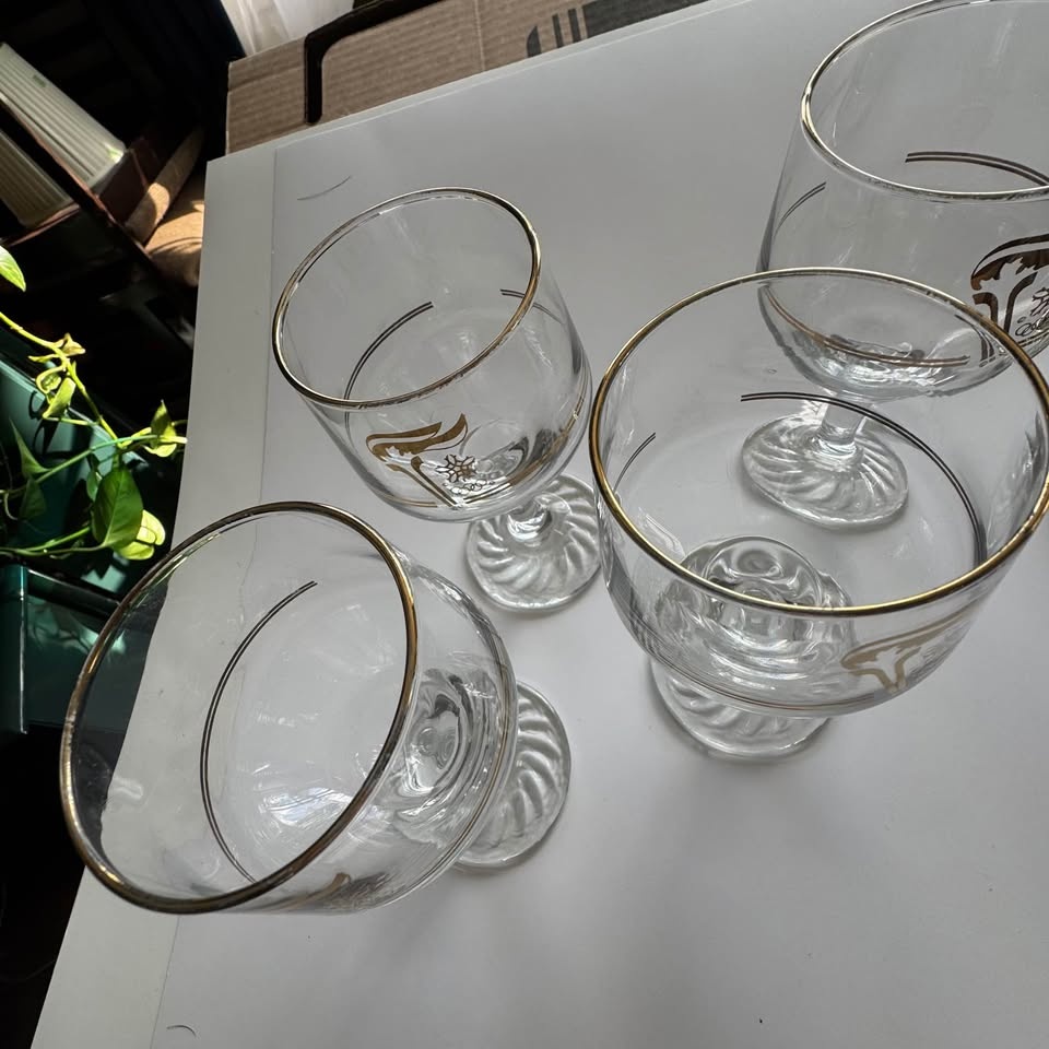 - The glasses were part of a set that included various styles such as wine glasses, brandy snifters (like the one pictured), and pilsner glasses.