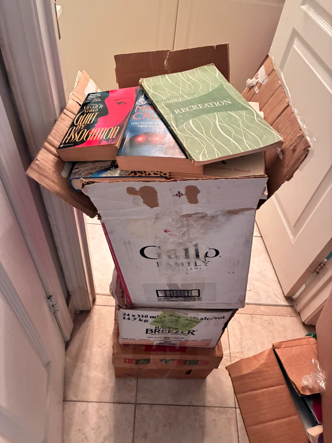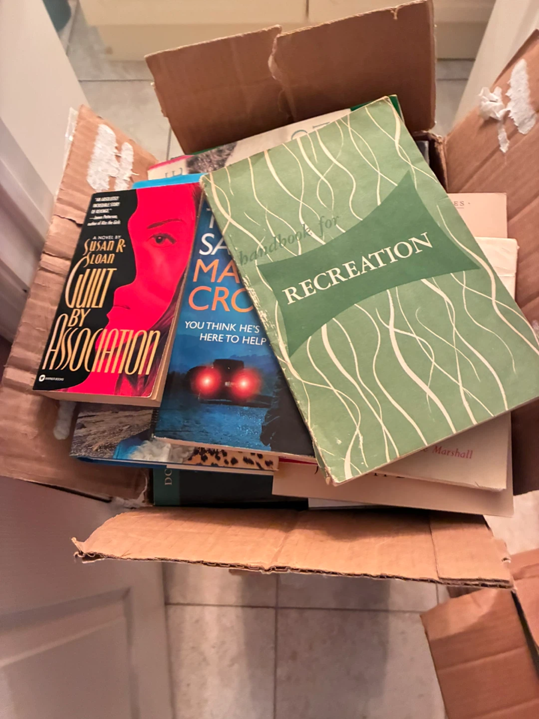 Please read for a smooth transaction. Giving away mystery boxes filled with an assortment of books. Everything from fiction, learning, philosophy, self help, mystery, romance, vintage and more.