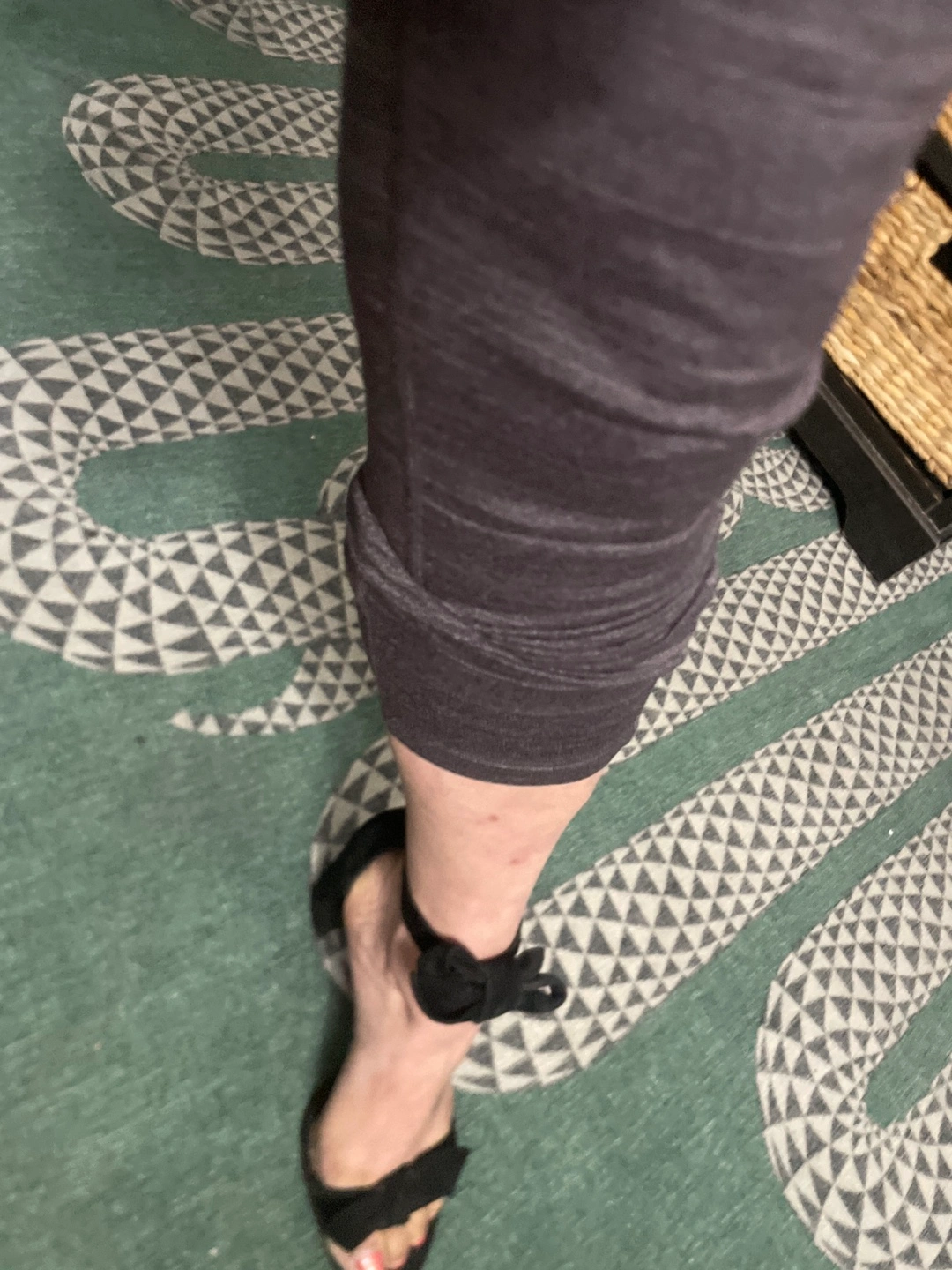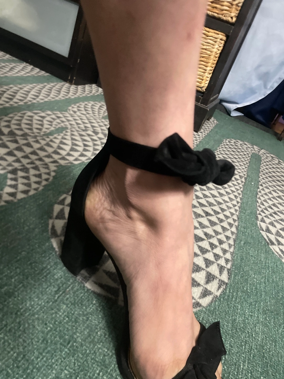Elegant black suede heels. Ankle strap with a bow detail. Block heel. Size 8 1/2-9