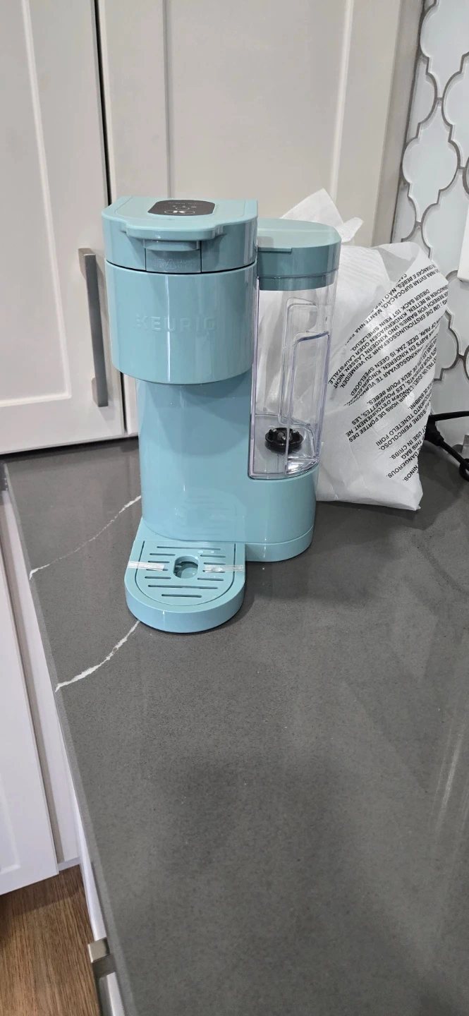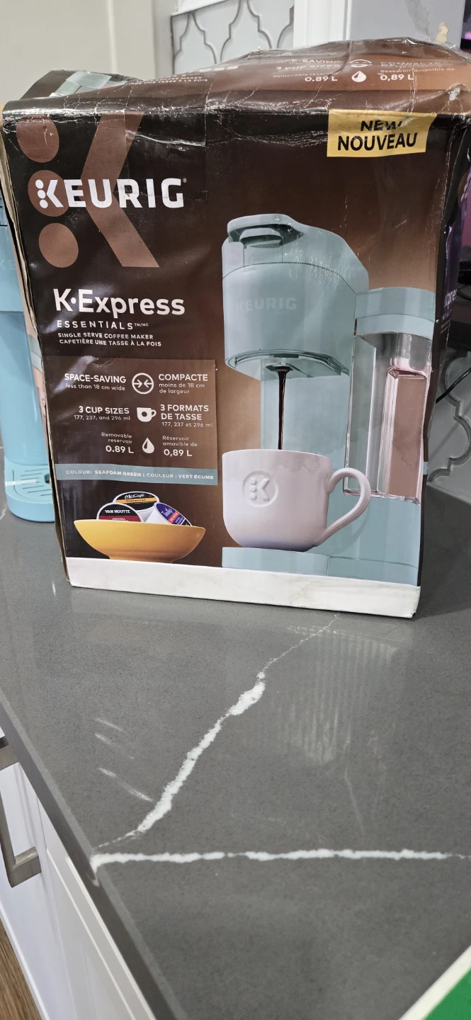 Selling a Keurig K-Express Essentials single serve coffee maker in a seafoam green colour!
