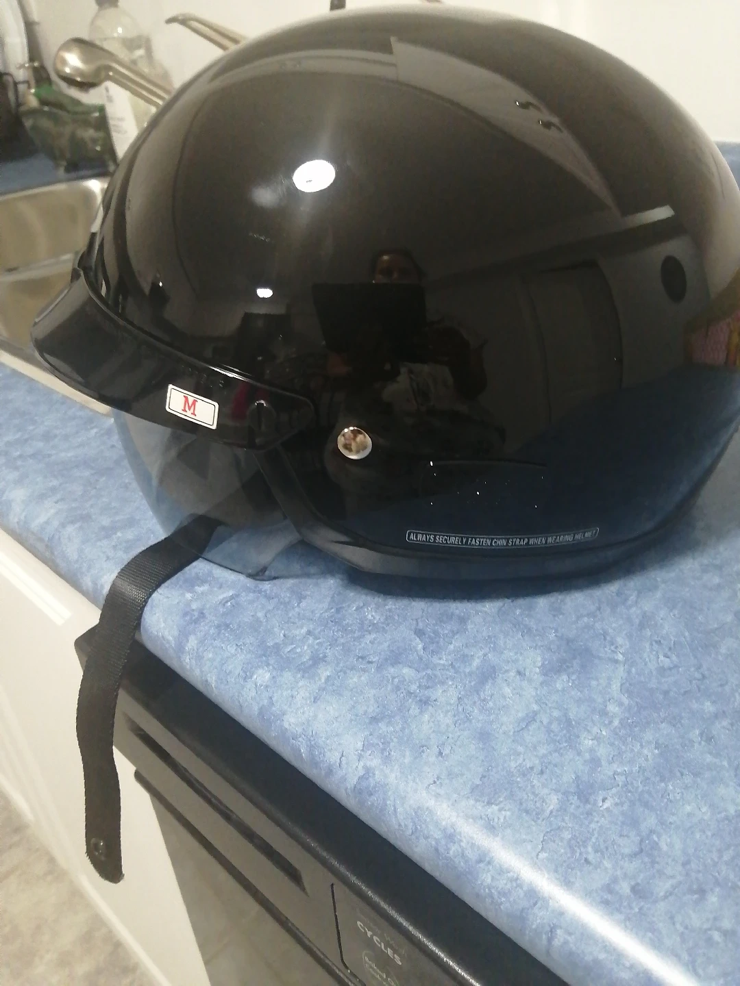 Selling a black HJC motorcycle helmet in size medium. It's in great condition and ready for a new rider! Always securely fasten chin strap when wearing helmet