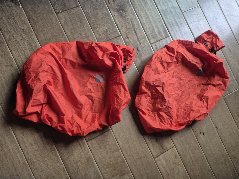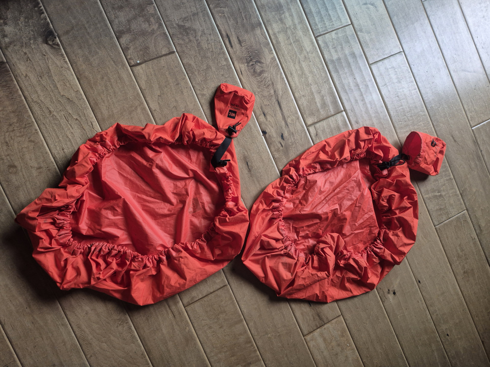 Selling two MEC rain covers in orange! They're in great condition and ready to keep your bags dry. Perfect for biking, hiking or just getting around town on a rainy day.