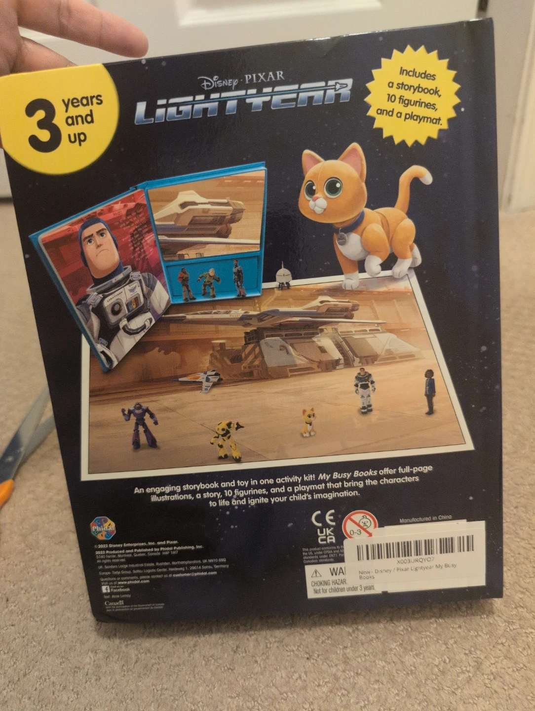 This Disney Pixar Lightyear My Busy Books playset includes a storybook and 10 figurines. It's designed for kids 3 years and up. An engaging storybook and toy in one activity set brings the characters to life!