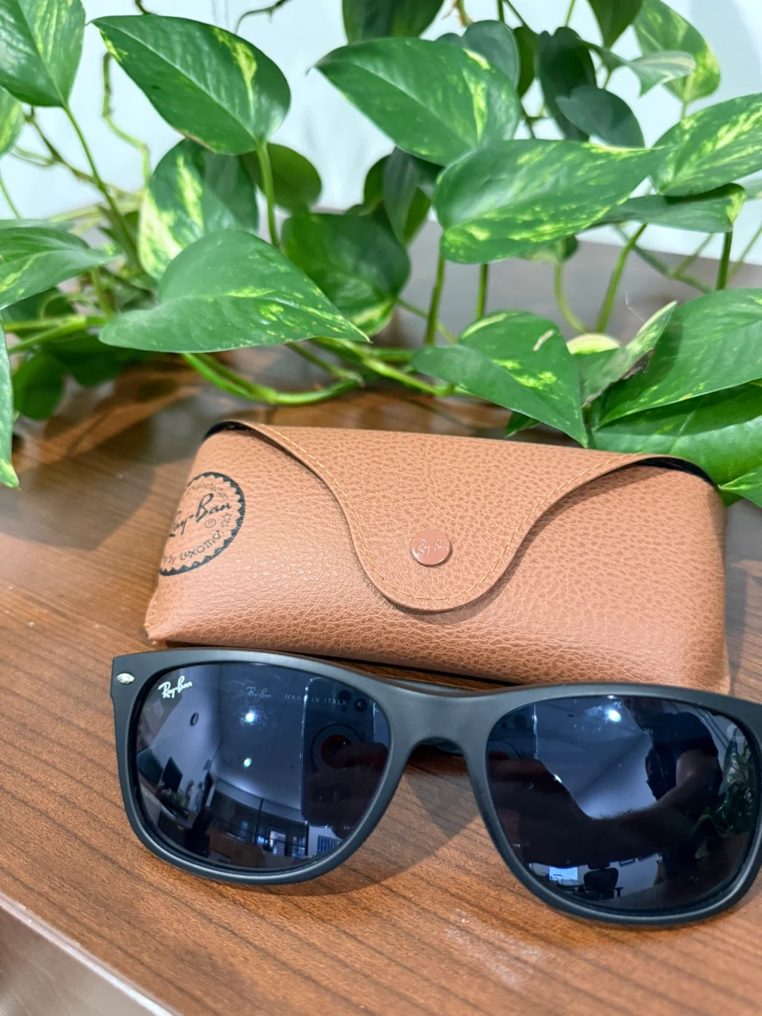 Selling a pair of Ray-Ban New Wayfarer sunglasses in black. The model number is RB 2132. The size is 55[]18 145 3N. Comes with the original Ray-Ban case and cleaning cloth