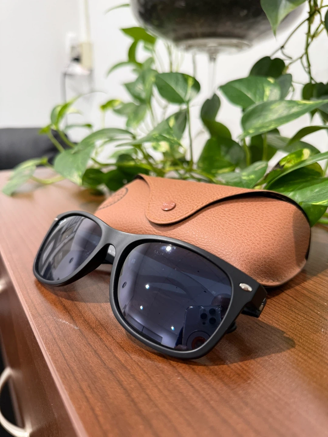 Selling a pair of Ray-Ban New Wayfarer sunglasses in black. The model number is RB 2132. The size is 55[]18 145 3N. Comes with the original Ray-Ban case and cleaning cloth